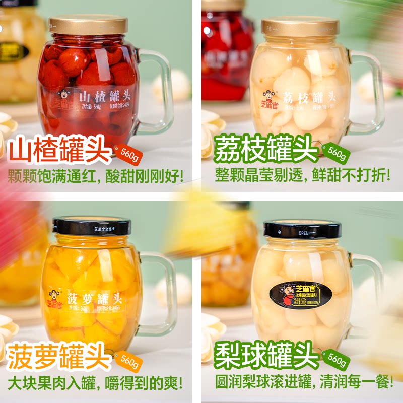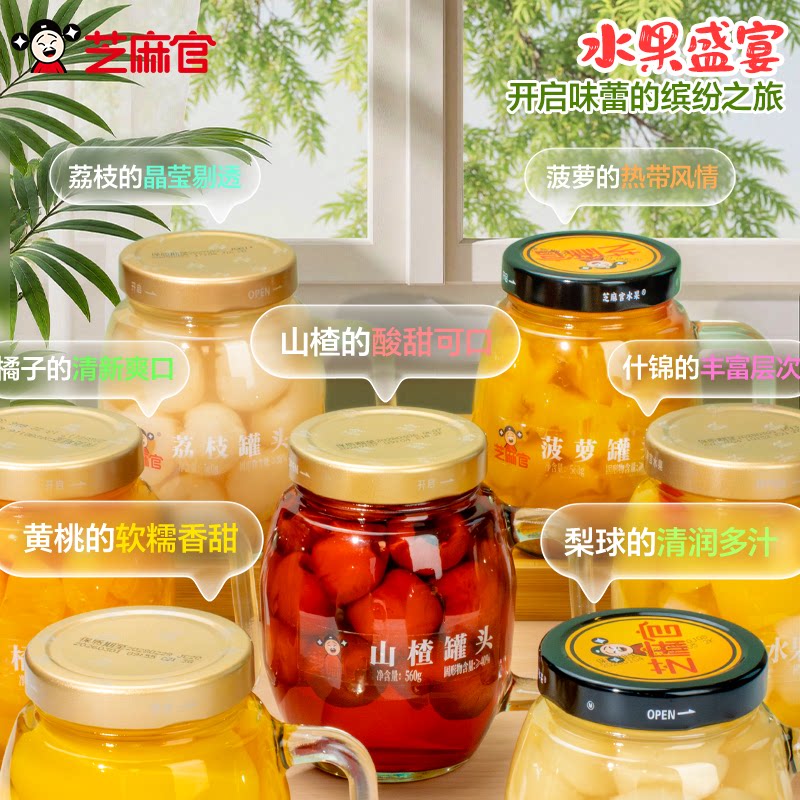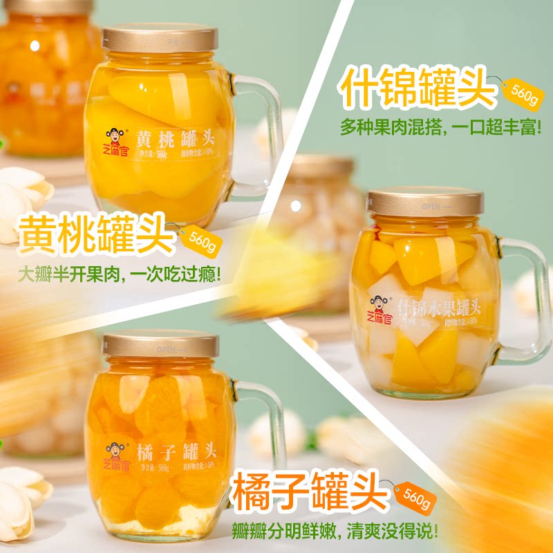📚 芝麻官黄桃罐头水果捞官方旗舰店正品整箱新鲜糖水黄桃560g*3罐