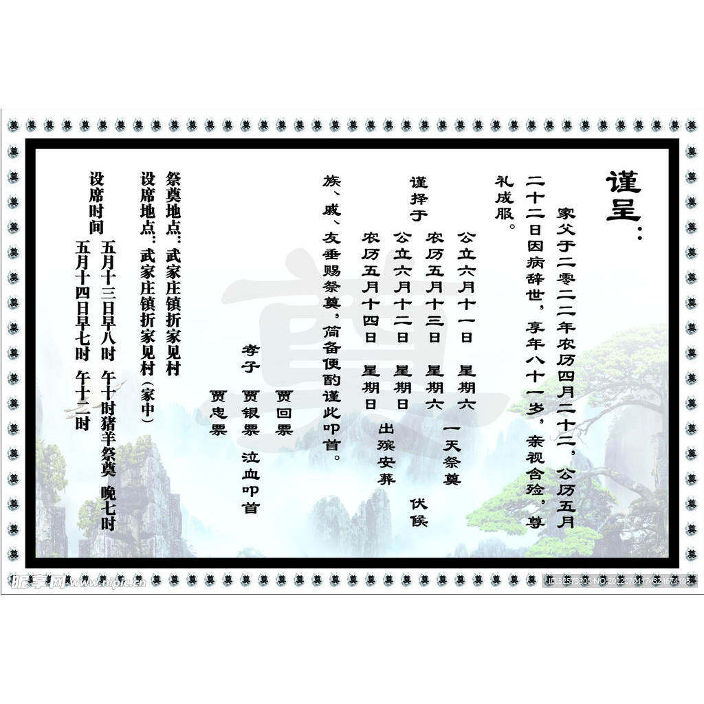 📚 白事执事单出殡仙逝谨呈祭奠哀谏讣告殡父葬母沉痛悼念逝世葬父