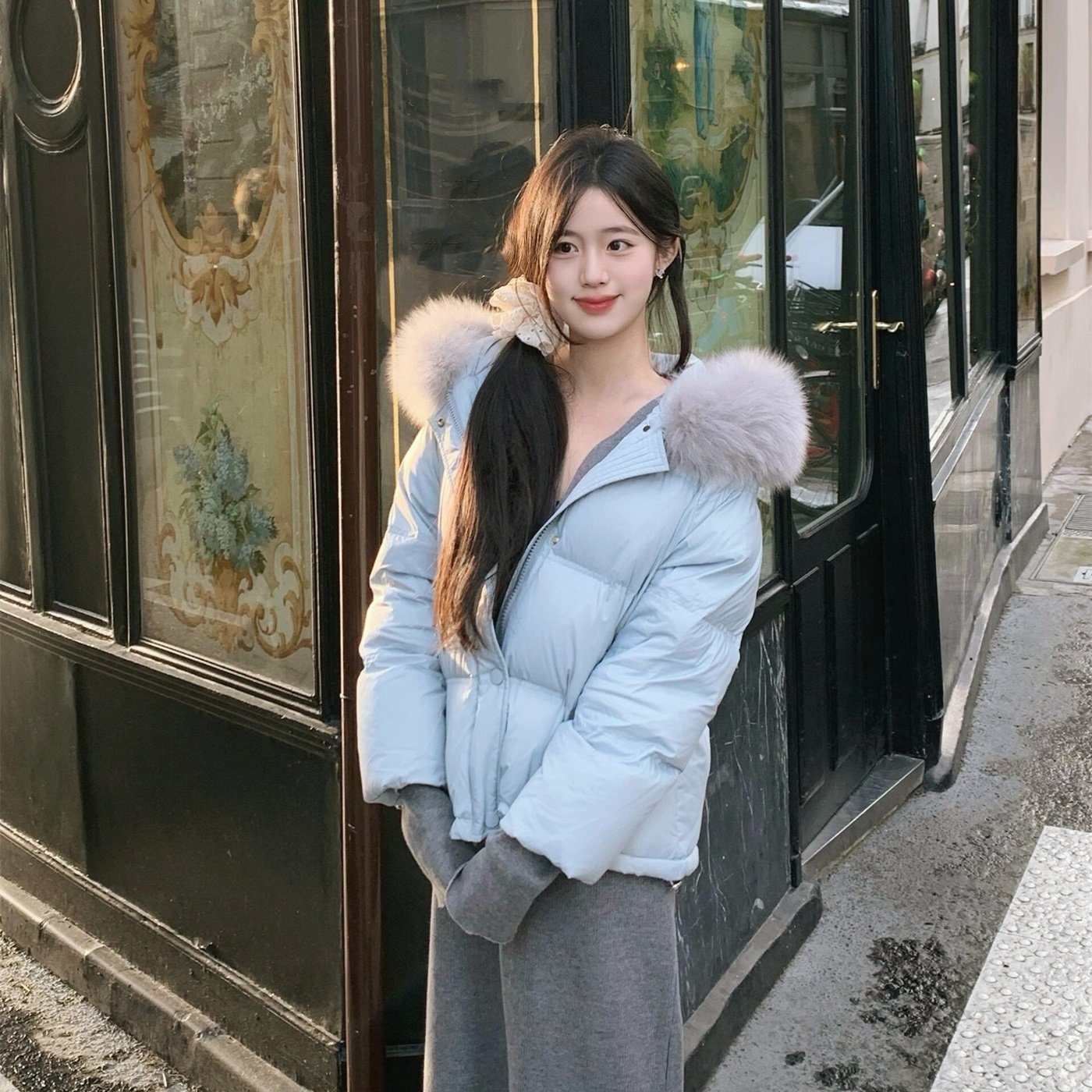 📚 瑾姑娘【慵懒甜美】真狐狸毛 90白鸭绒 宽松抽绳连帽短款羽绒服女