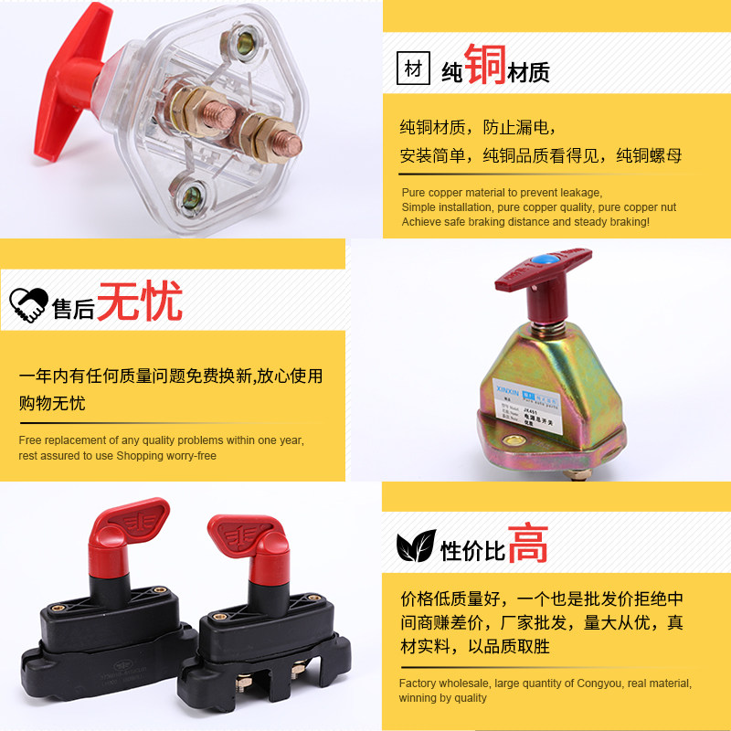 📚 汽货车电源总开关断电总闸刀蓄电池叉铲农用车纯铜闸12V24伏手拧