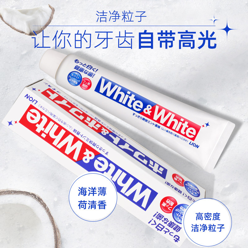 📚 日本进口狮王white牙膏口气清新去黄牙垢洁净含氟家庭实惠装家用