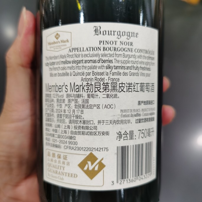 📚 会员超市代购MM法国进口勃艮第黑皮诺红葡萄酒750ml樱桃草莓香气
