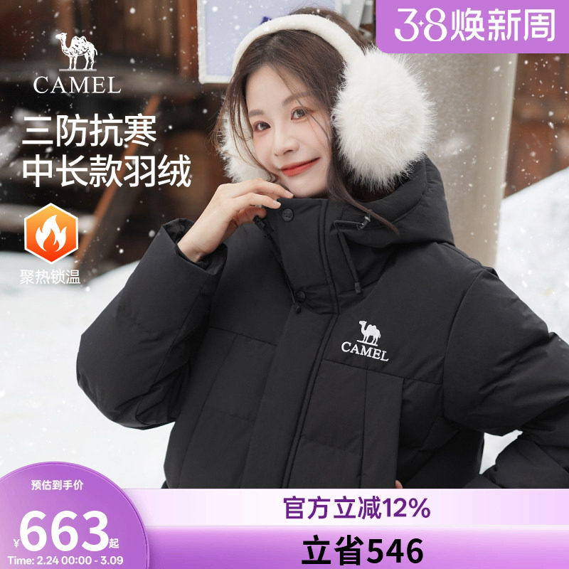 🔥骆驼女装中长款羽绒服2025冬季新款三防连帽加厚保暖防水外套,惊艳你的冬季穿搭!💫