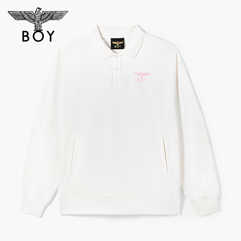 📚 BOYLONDON春季情侣款口袋上衣潮牌印花polo领套头长袖卫衣N03005