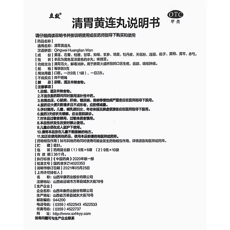 📚 立效 清胃黄连丸9g*6袋/盒口舌生疮清胃泻火咽喉肿痛口舌生疮