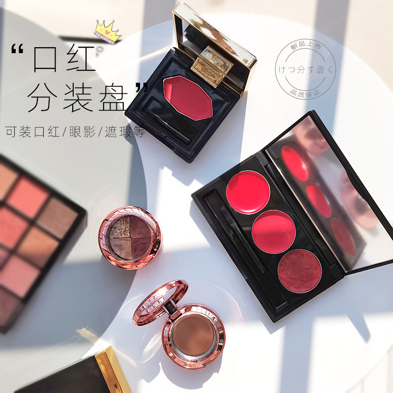 📚 口红分装盘多格便携防尘分装盒带唇刷小口红分装盒镜子款分装空盒