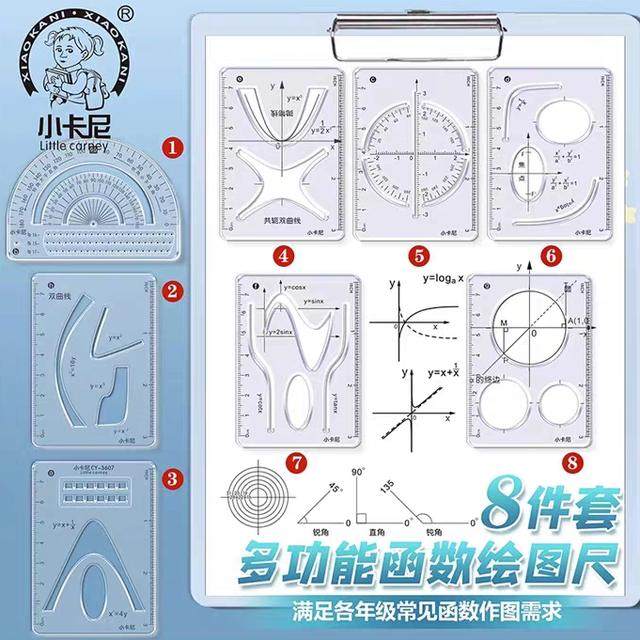 📚 【老师推荐】8件套多功能函数尺小学初中高中数学立体图形画图