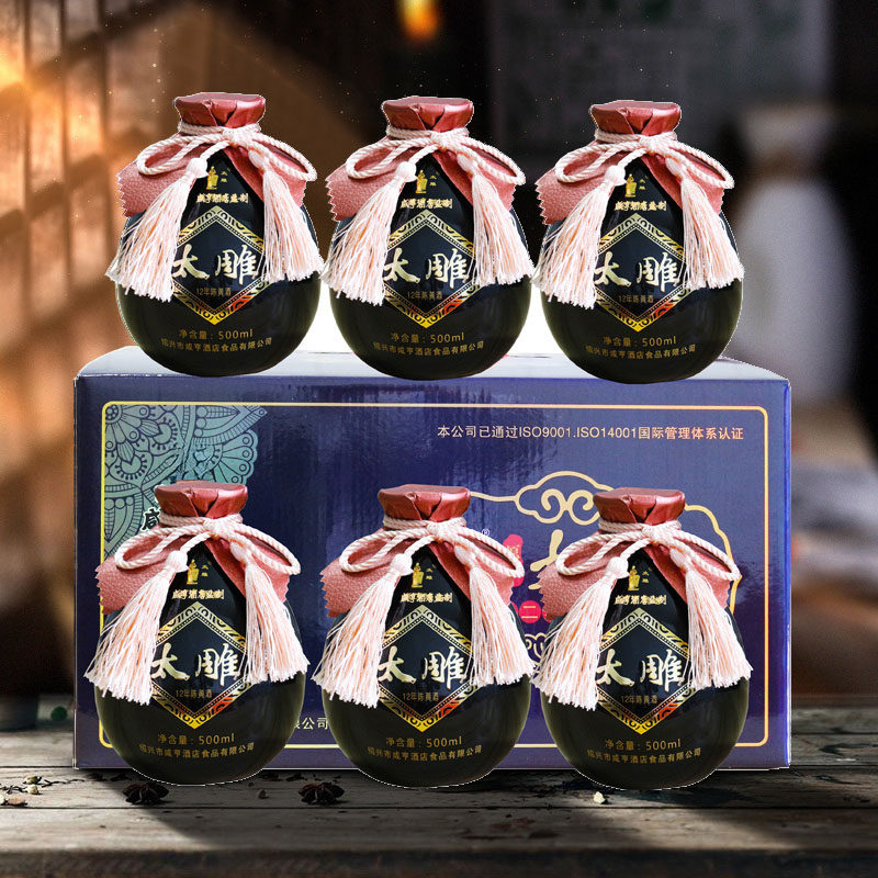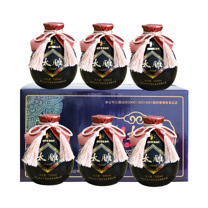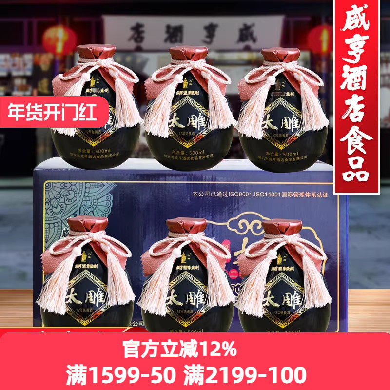 📚 绍兴咸亨酒店食品太雕黄酒太雕十二年500mlx6瓶礼盒箱装糯米半甜