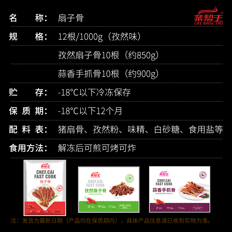 📚 菜帮主手抓扇子骨12根酒店专用餐饮食材冷冻半成品腌制猪排扇骨