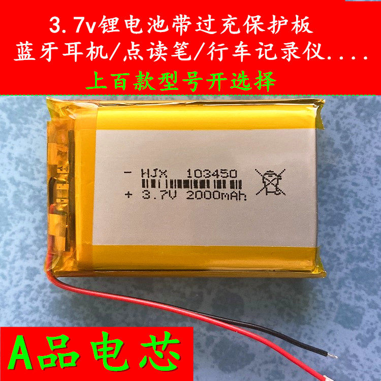 📚 3.7v聚合物锂离子电池103450可充电LED灯大容量电芯2000毫安通用