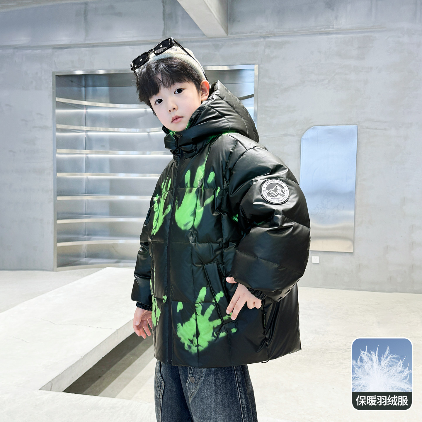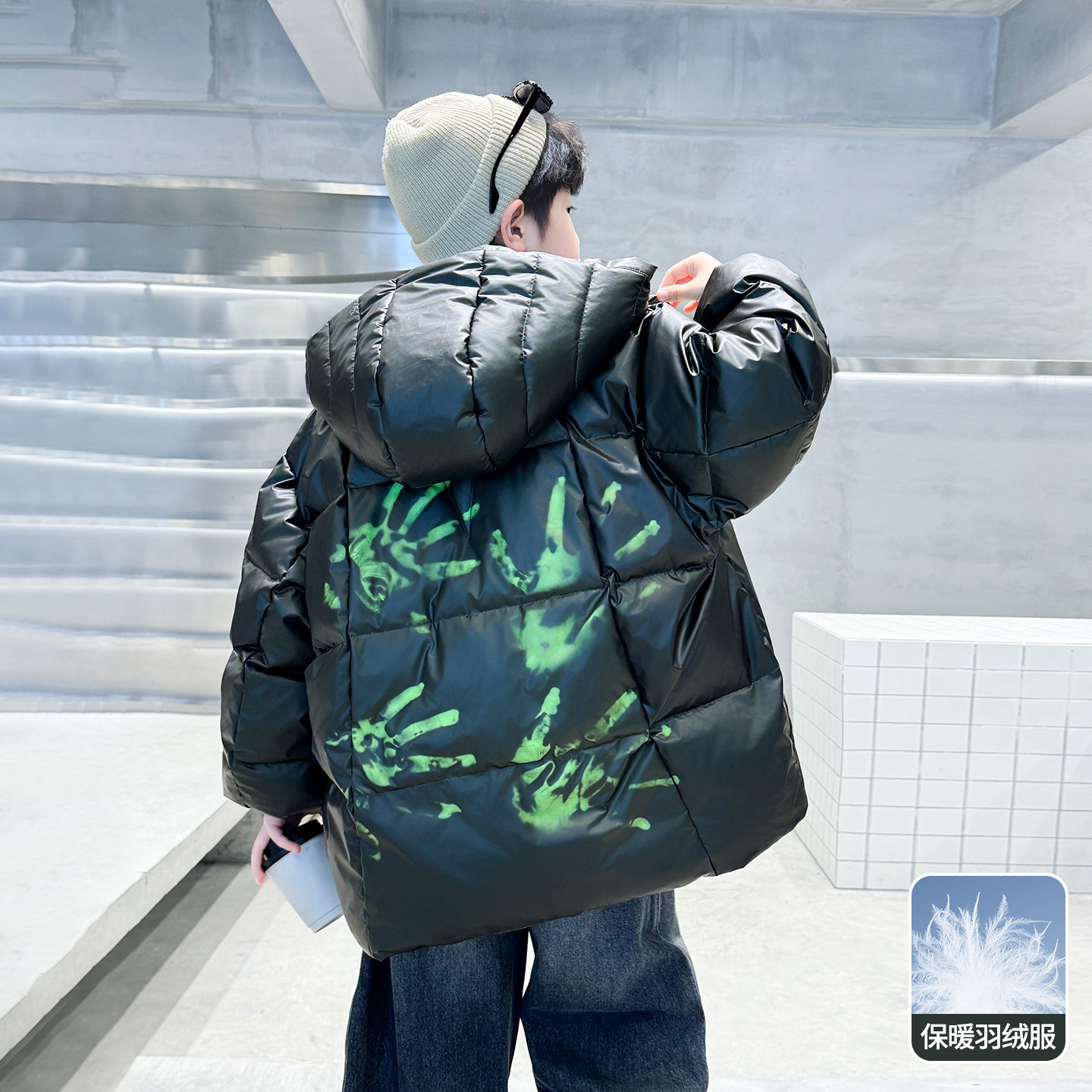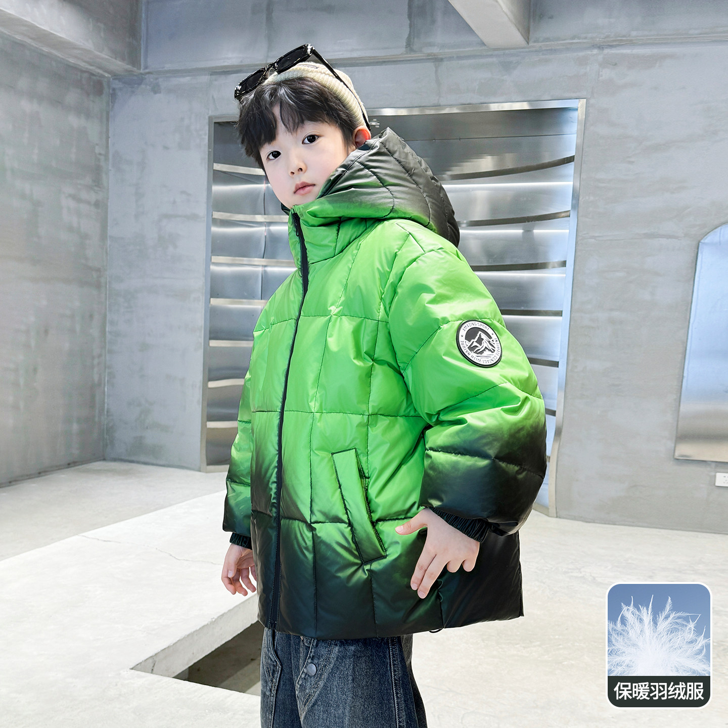 📚 男童冬装温感变色羽绒服2025新款中大儿童冬季加厚免洗面包服外套
