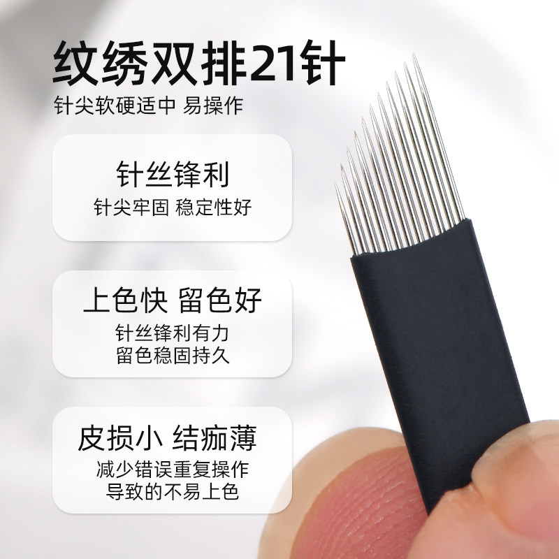 📚 纹绣手工针片双排21针打雾针半永久雾眉针漂唇针弯弯绣针用品工具