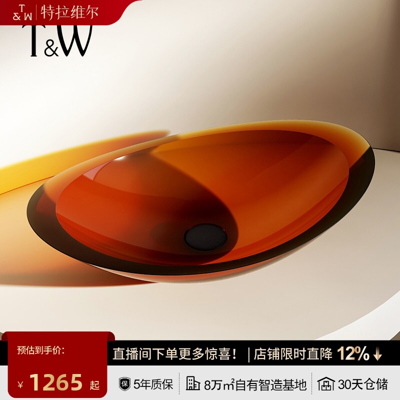 📚 特拉维尔透明台上洗手盆树脂彩色水晶家用小尺寸卫生间艺术洗脸盆
