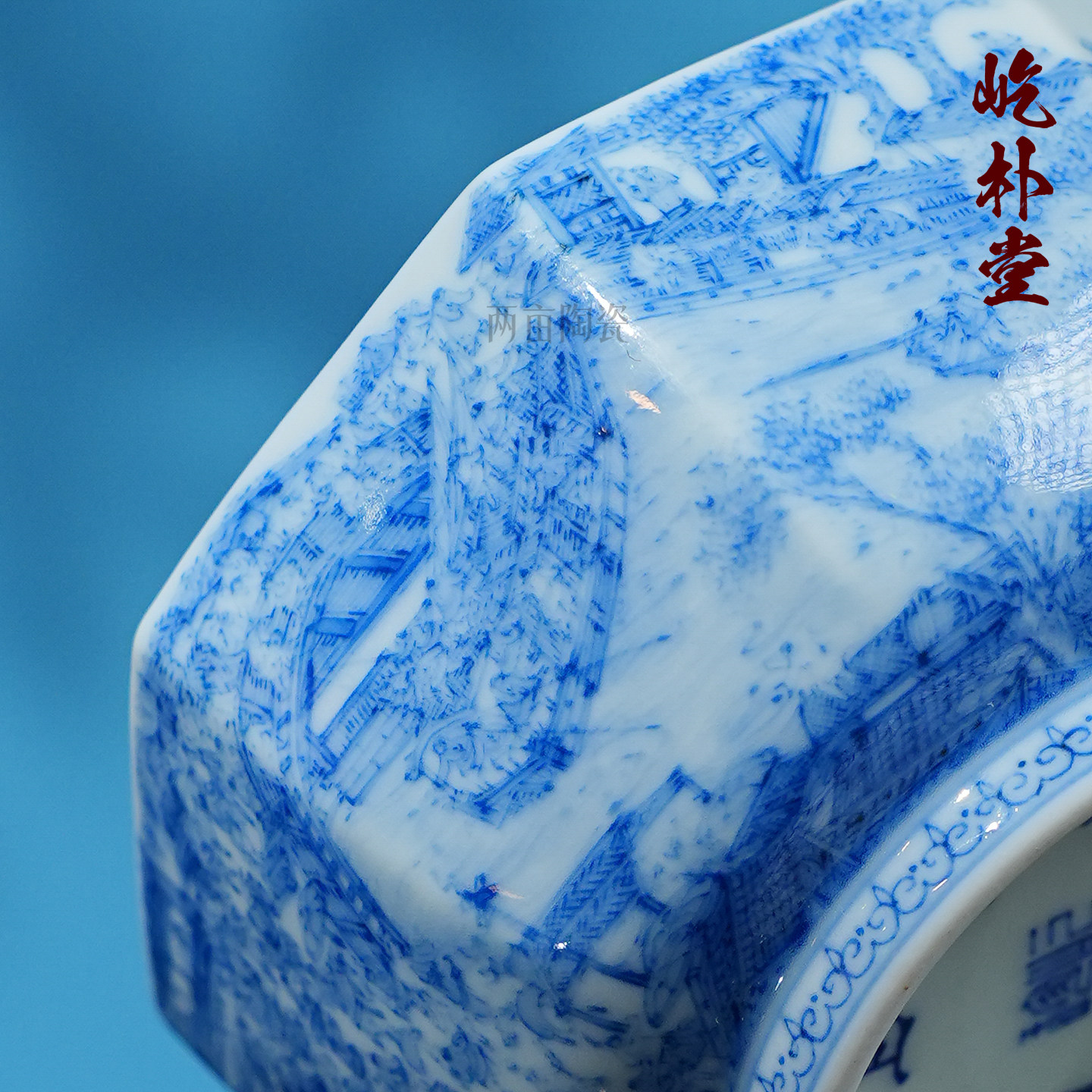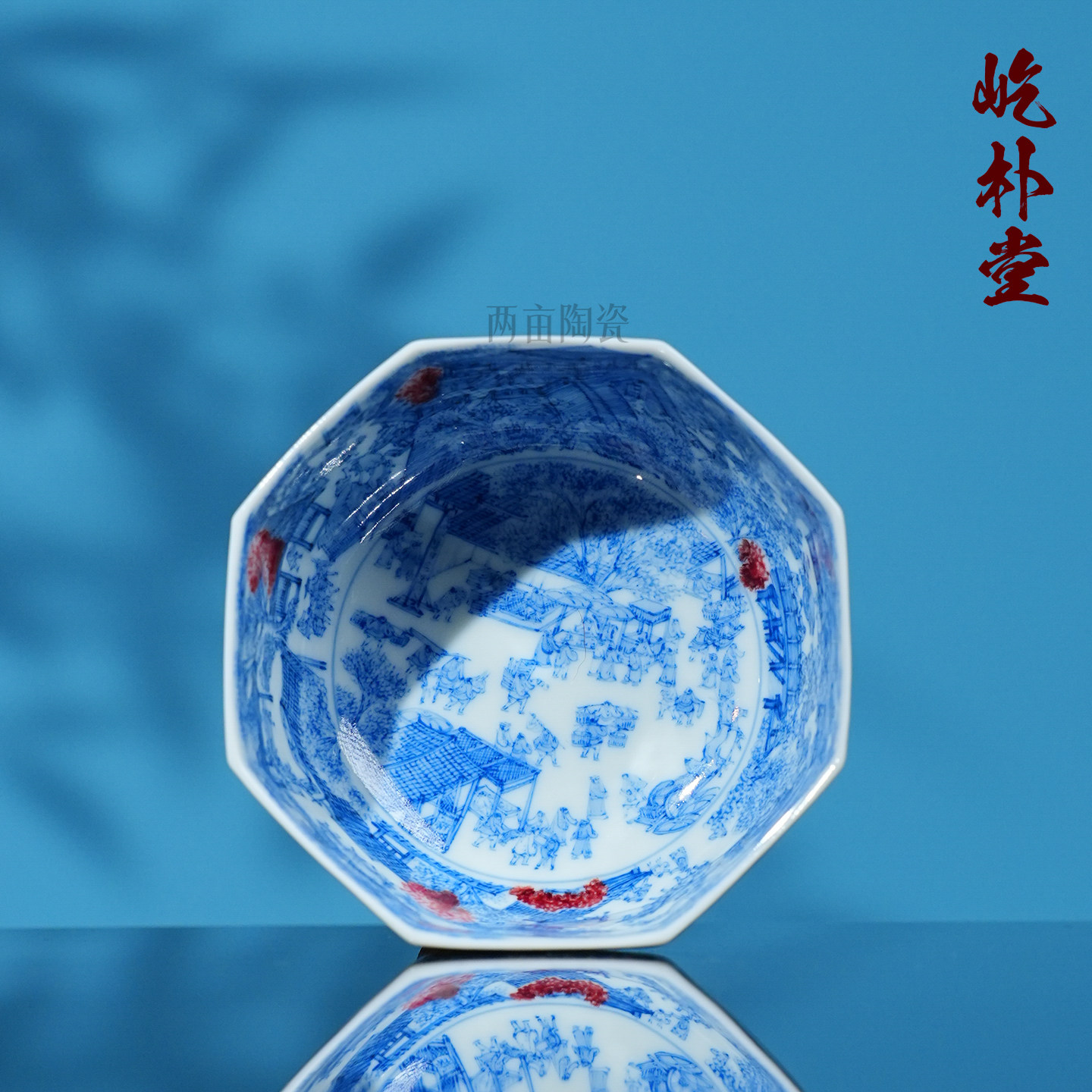 📚 屹朴堂青花釉里红清明上河图八方杯130ml 陶瓷中式青花手绘主人杯