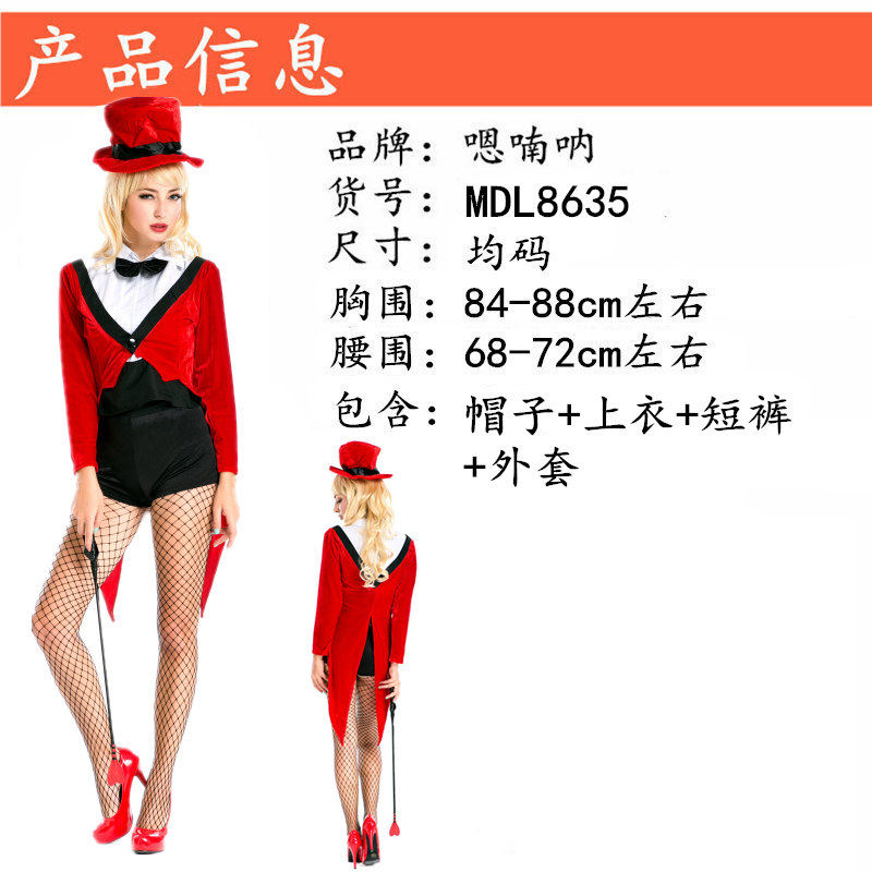 48¥ HU591 ElIUU8p09kC¥ https://m.tb.cn/h.7HyzdgK halloween万圣节百老汇女王服装女燕尾魔术师演出服ds夜店派对装 --------------------- 【原售价】88元 【现售价】88元。
