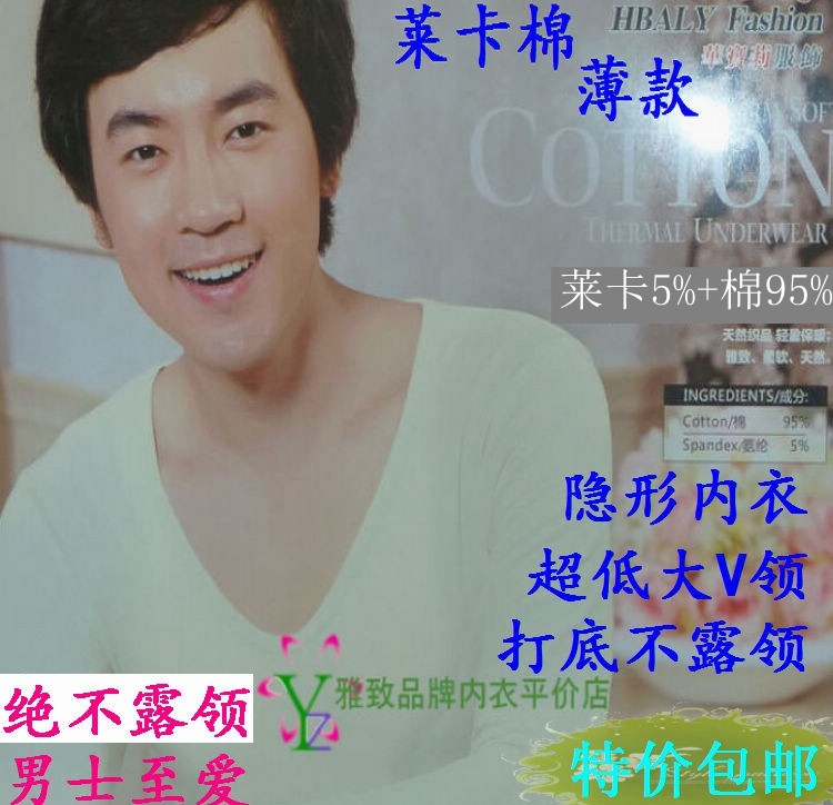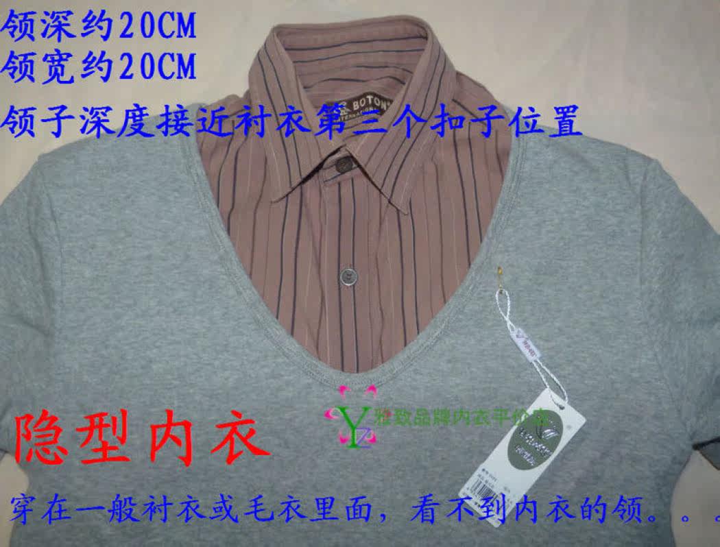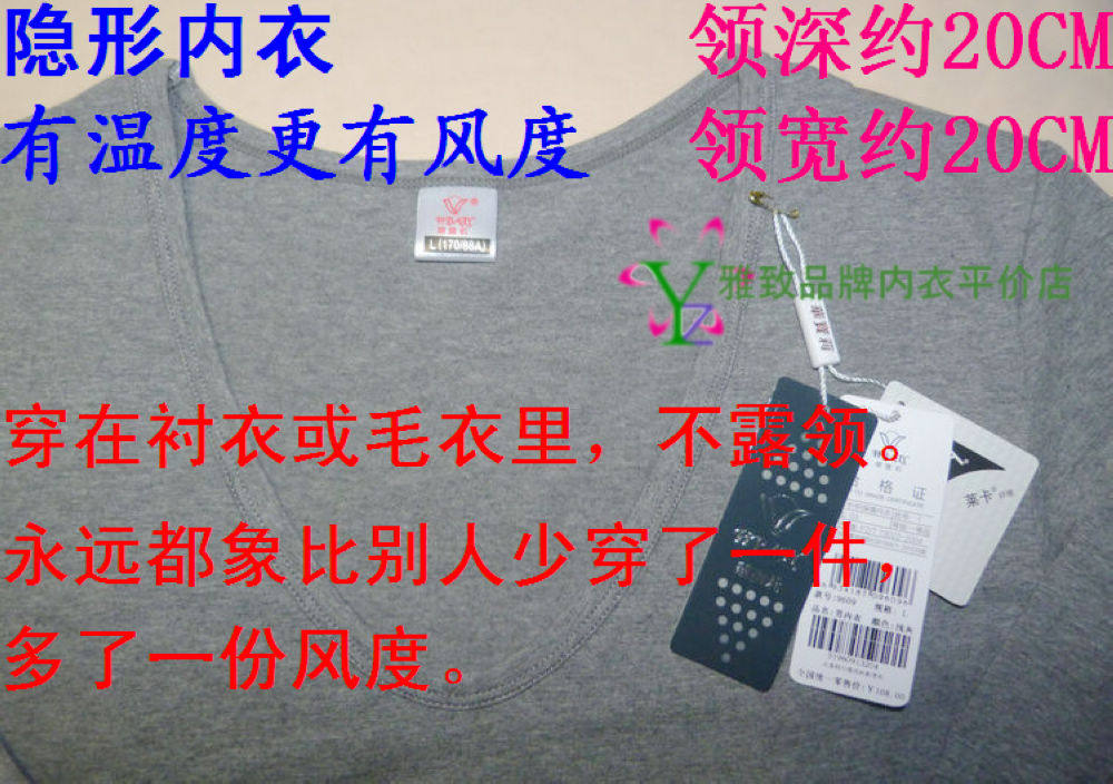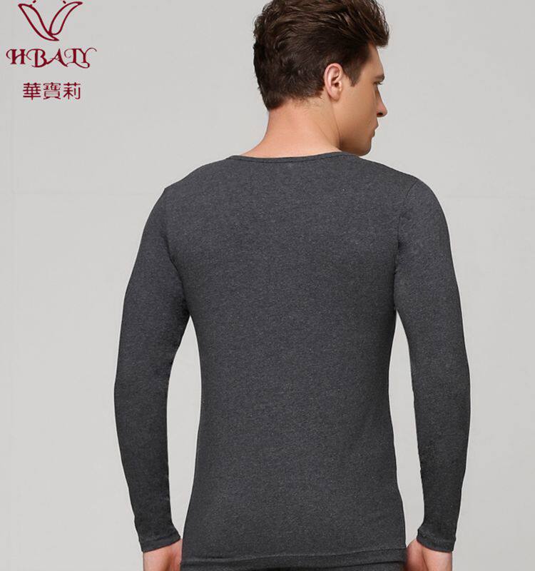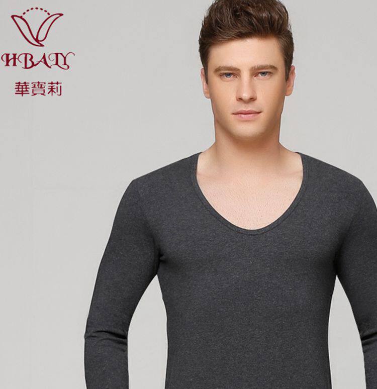📚 华宝莉品牌 纯棉超低大V领不露领 男薄保暖内衣套装 单件上衣9609