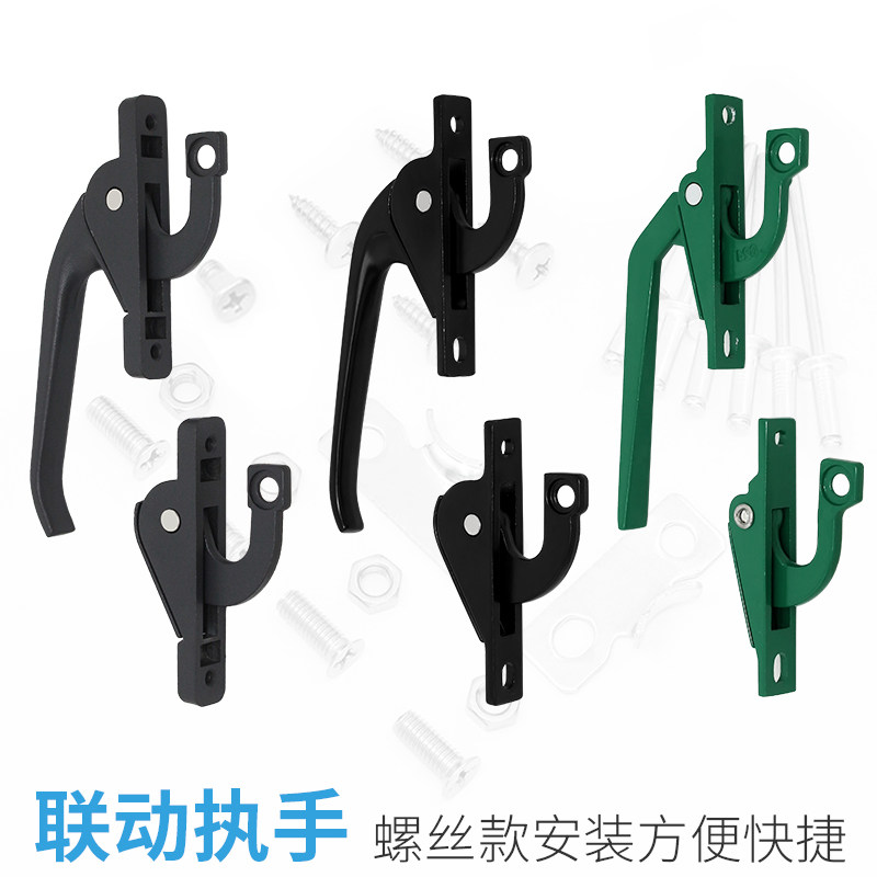 📚 外开窗拉手连杆锁扣塑钢平开窗户上下联动把手铝合金门窗执手配件