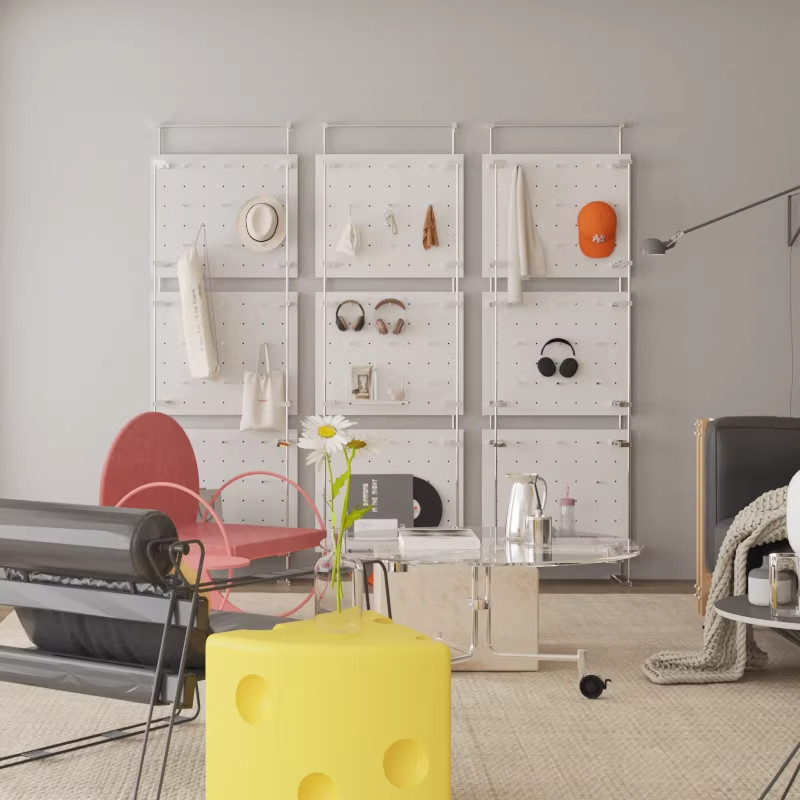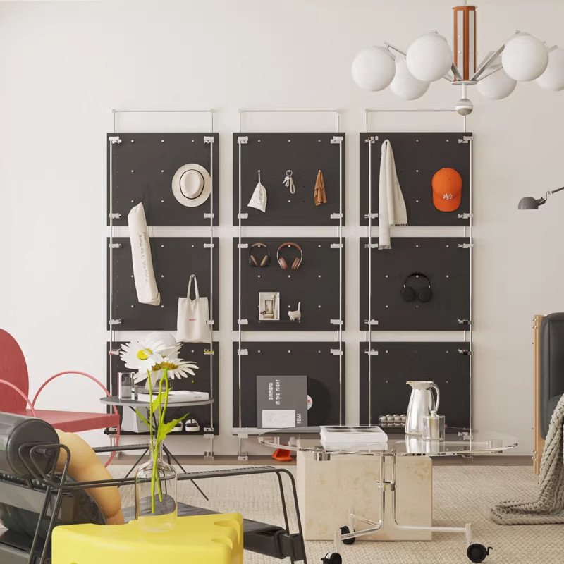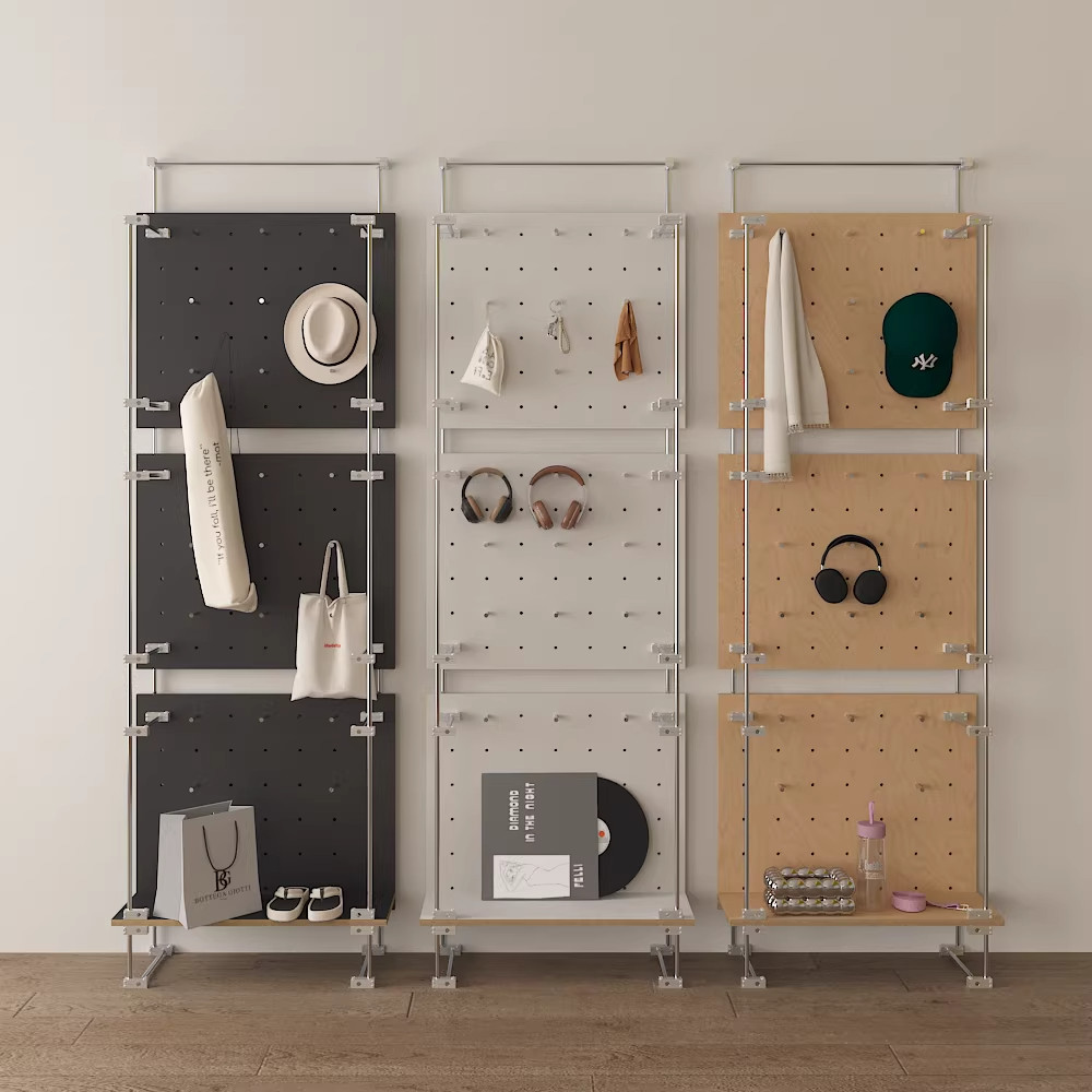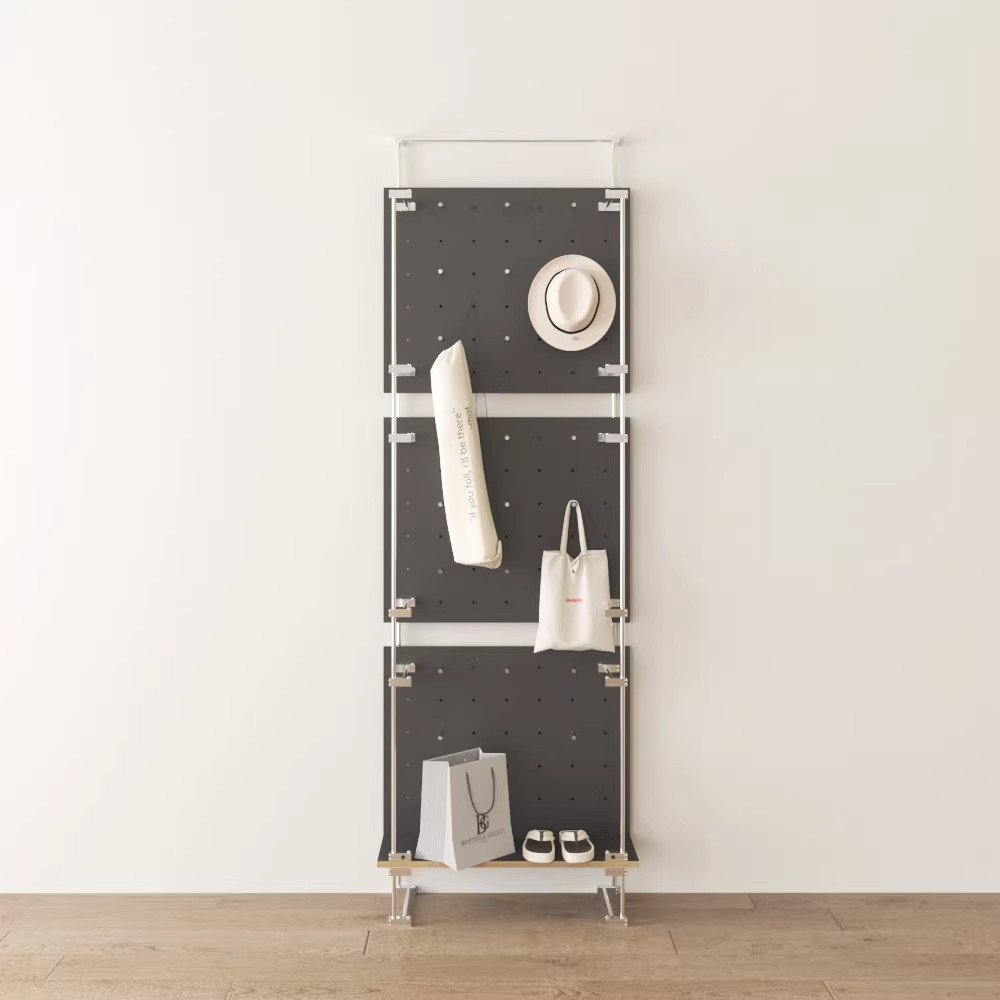 📚 现代中古风实木洞洞板免打孔海洋板可移动落地入户玄关客厅挂衣架