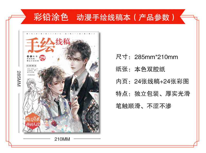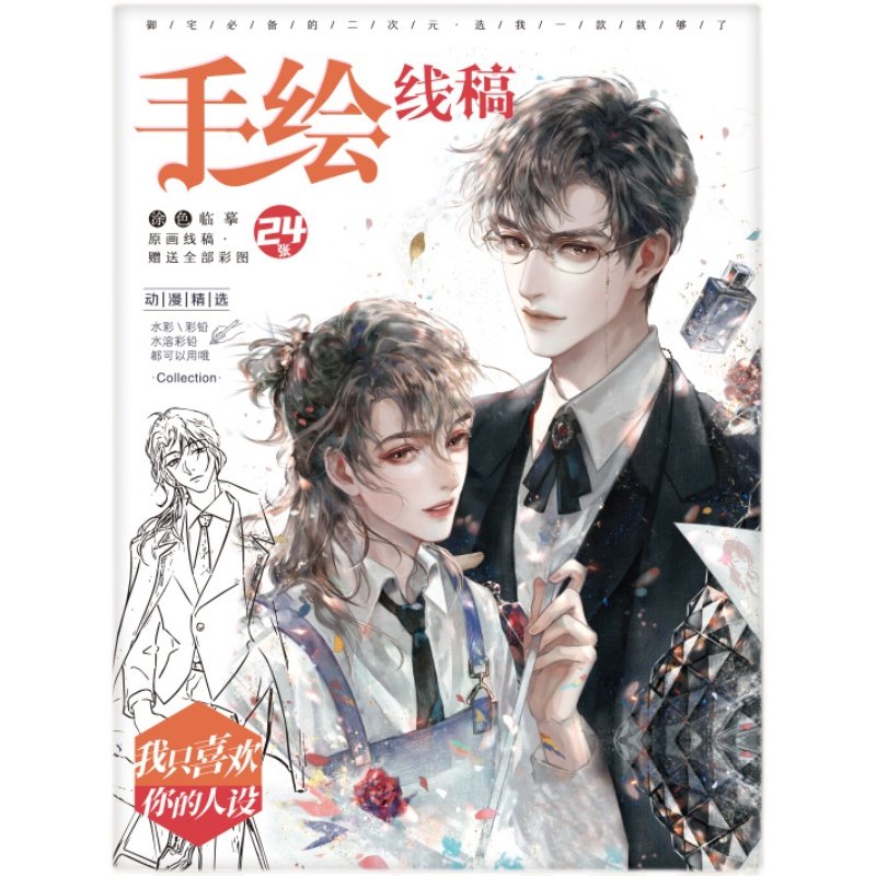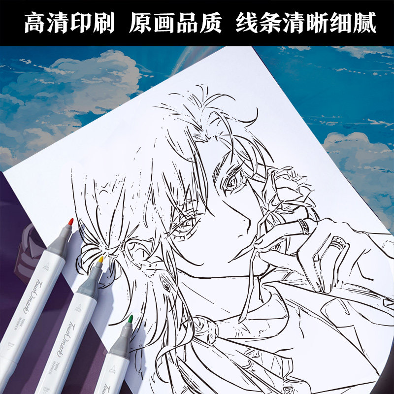 📚 卡通动漫我只喜欢你的人设线稿手绘本临摹本学生上色填涂画本素材