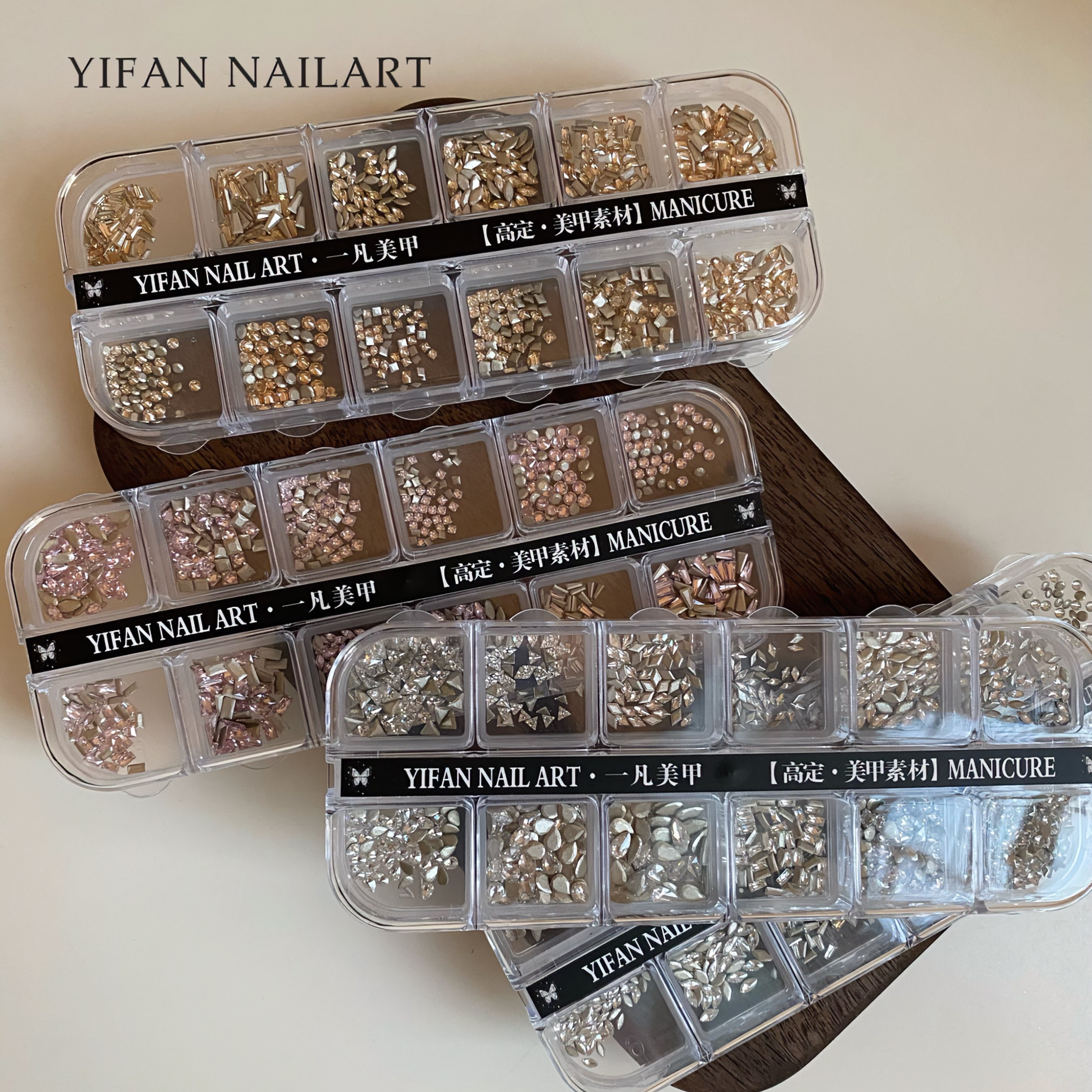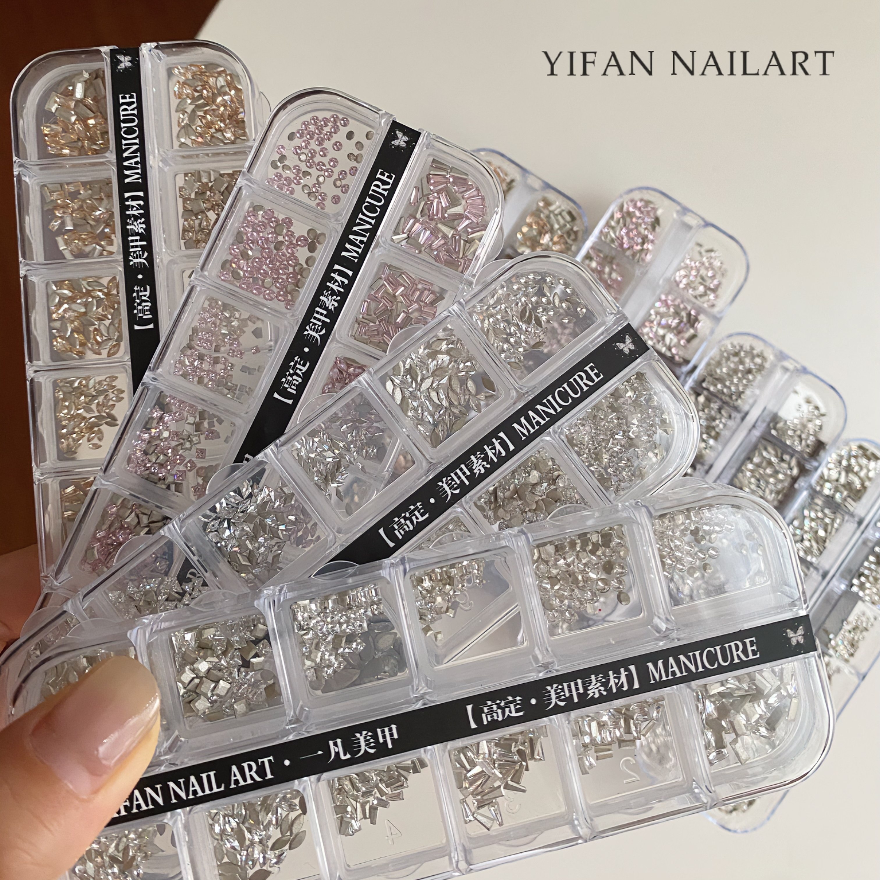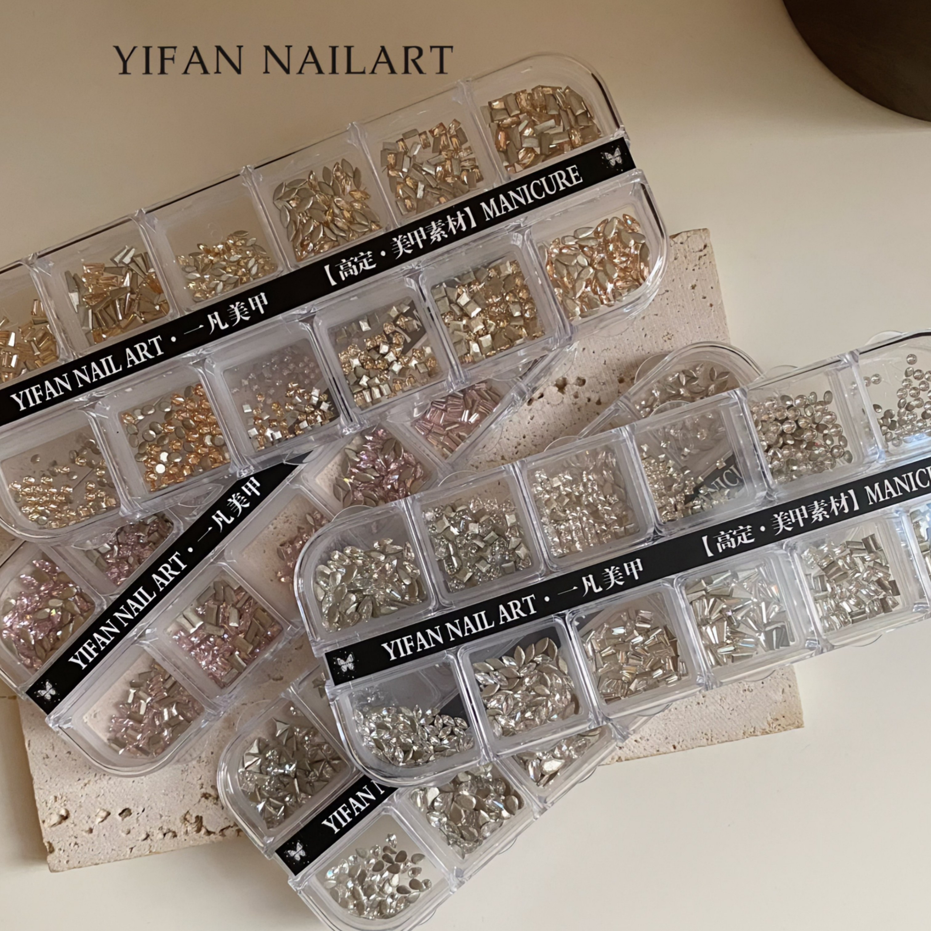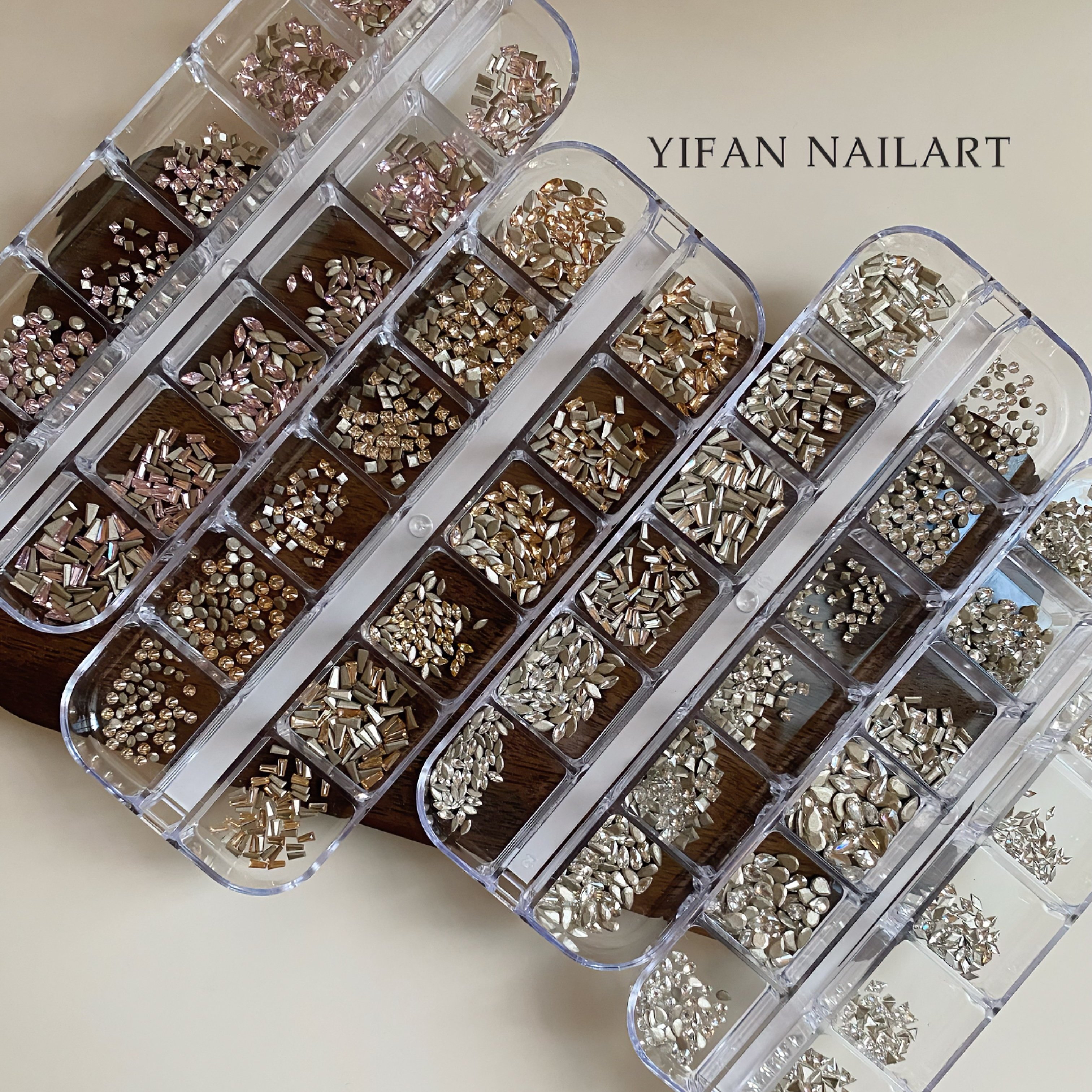 📚 YIFANNAIL【倒边平底】高精品迷你银白 香槟镀底锆石美甲饰品S87