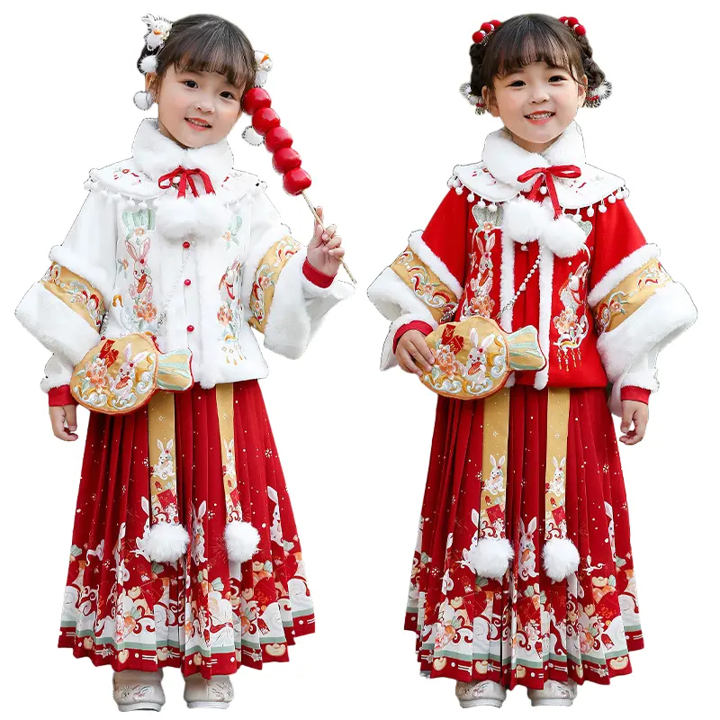 📚 儿童汉服女童拜年服加厚洋气中唐装日常喜庆年服秋冬套装上衣网纱