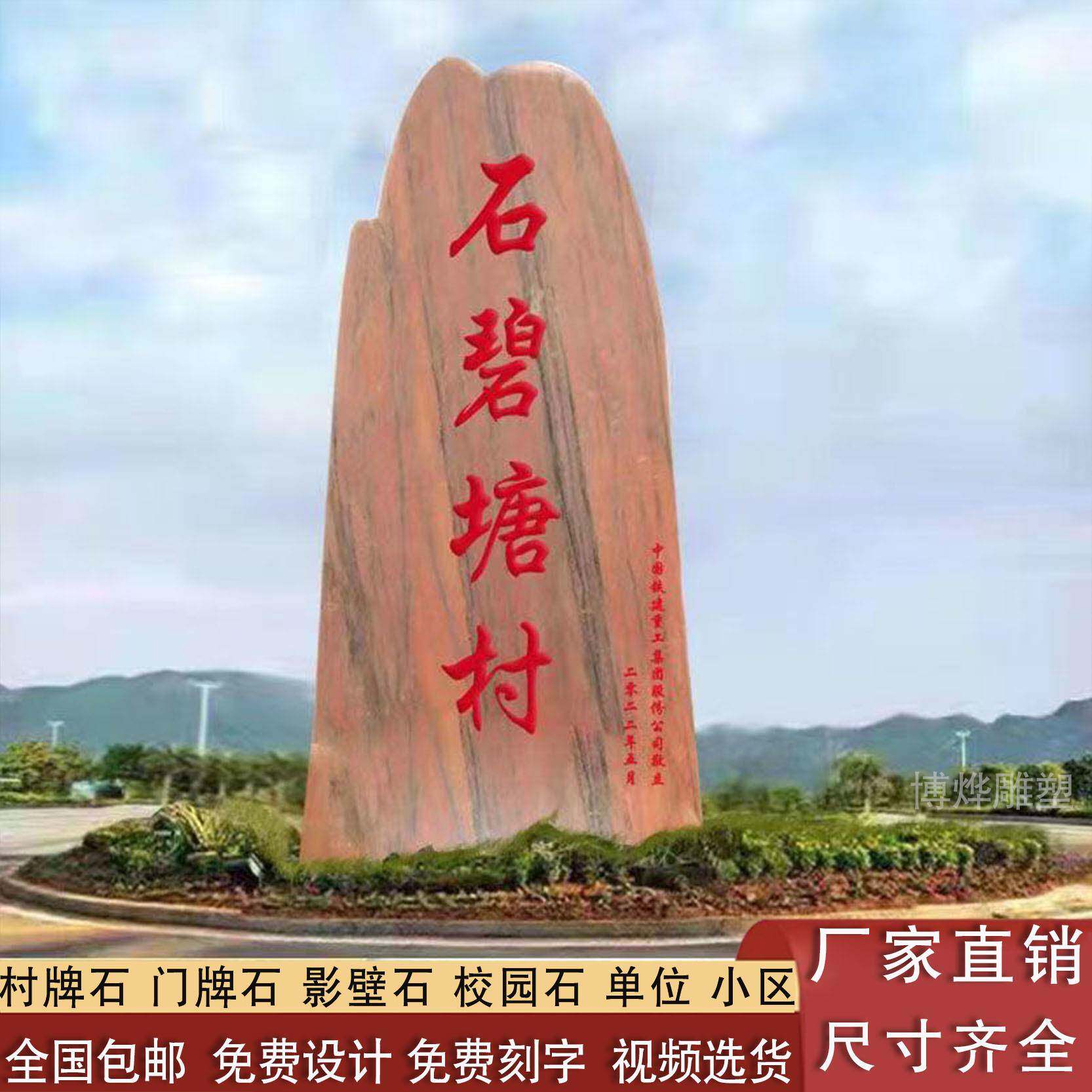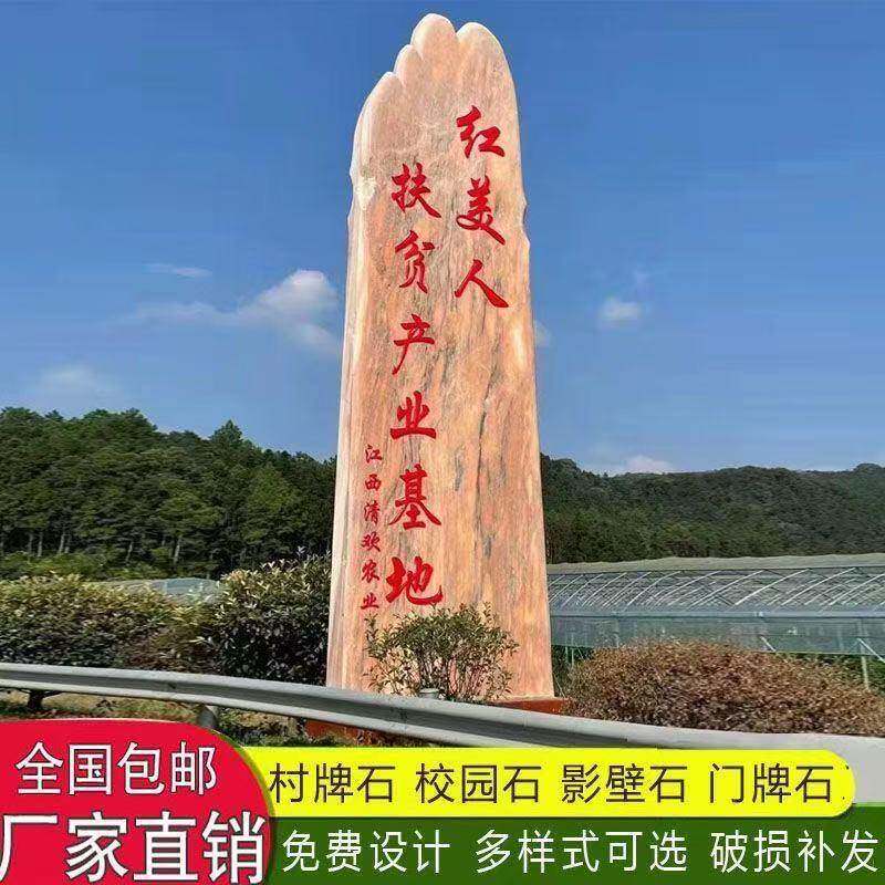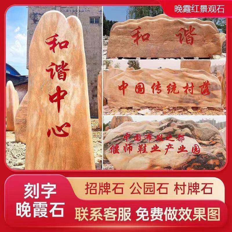 📚 景观石晚霞红村牌石石公司学校门牌石地标石户外装饰天然岩校训石