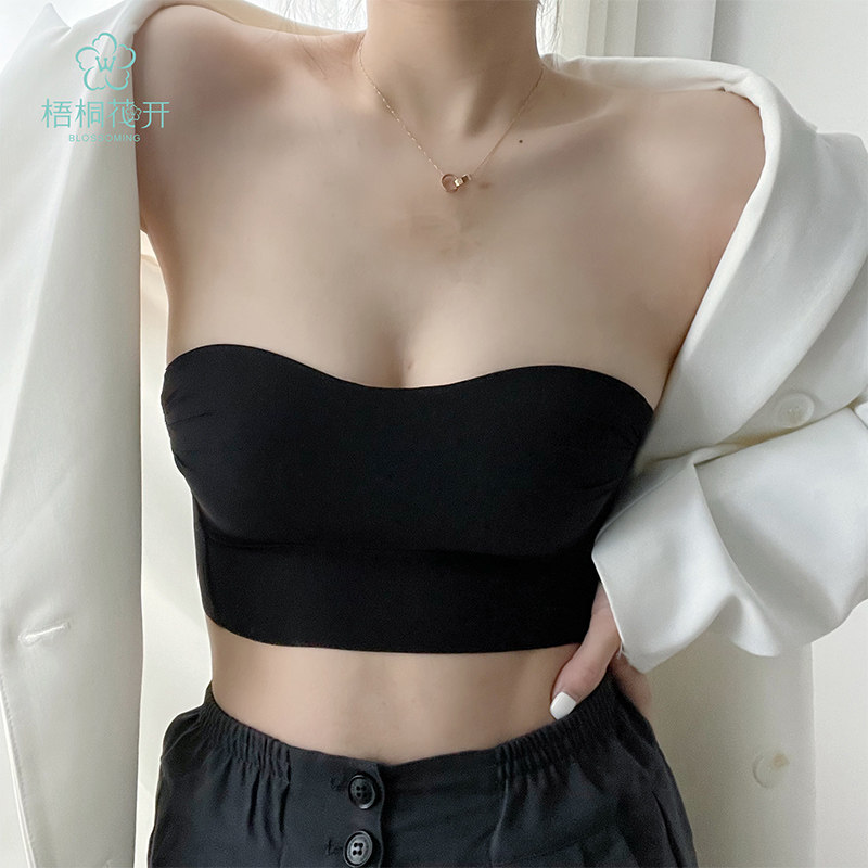 📚 梧桐花开文胸光面无痕无钢圈抹胸薄款美背露肩无肩带内衣HN65202