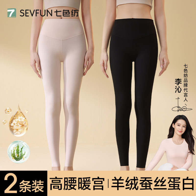 📚 【李沁代言】七色纺高腰秋裤女款保暖裤女士冬季贴身打底绒裤线裤