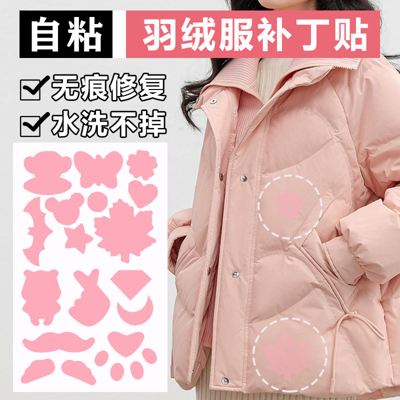 📚 F浅粉色羽绒服补丁贴滑雪衫免熨烫补巴贴免缝补可水洗划痕布丁贴