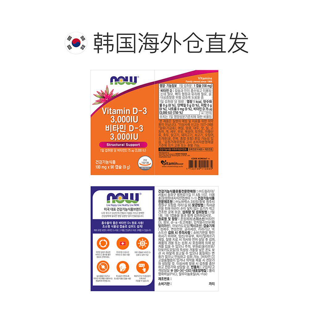 📚 韩国直邮Now诺奥维生素D3软胶囊3000IU补维D提高钙吸收