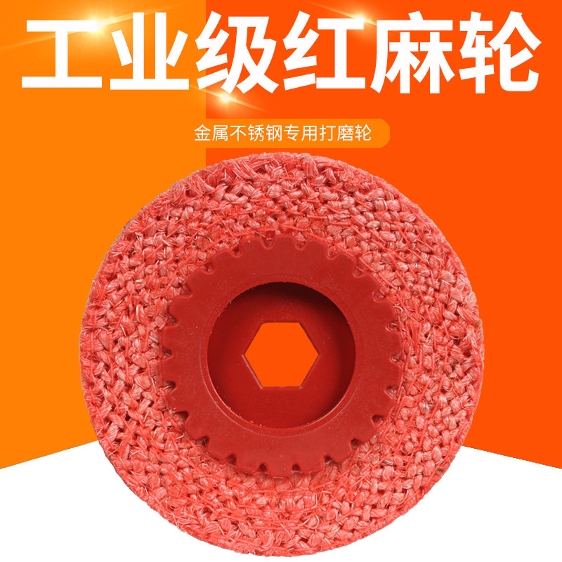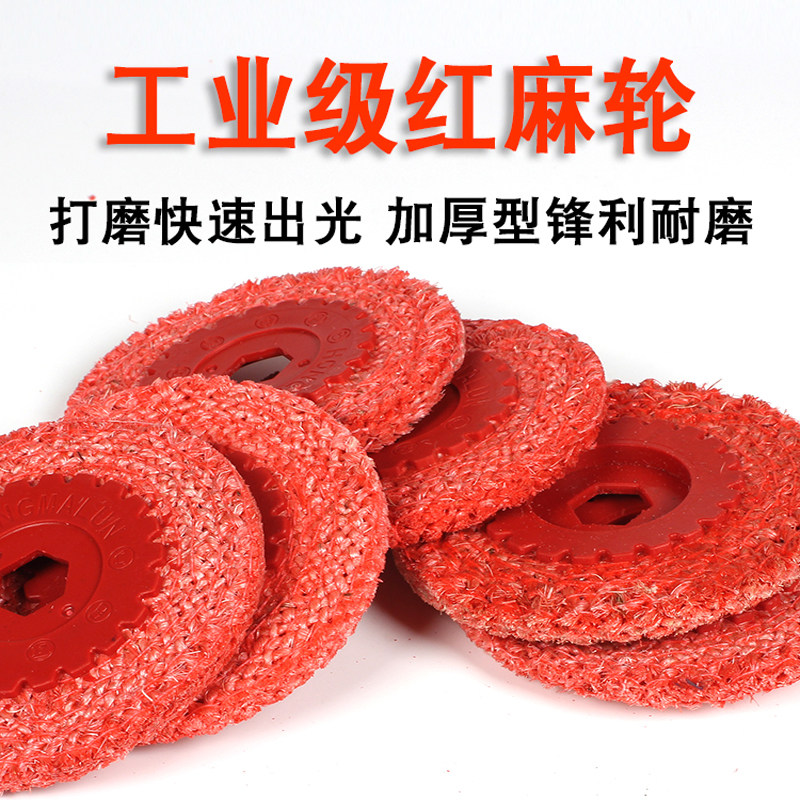 📚 4寸红麻轮/铁盖红磨轮/麻轮不锈钢抛光麻轮/角磨机麻轮100剑麻轮