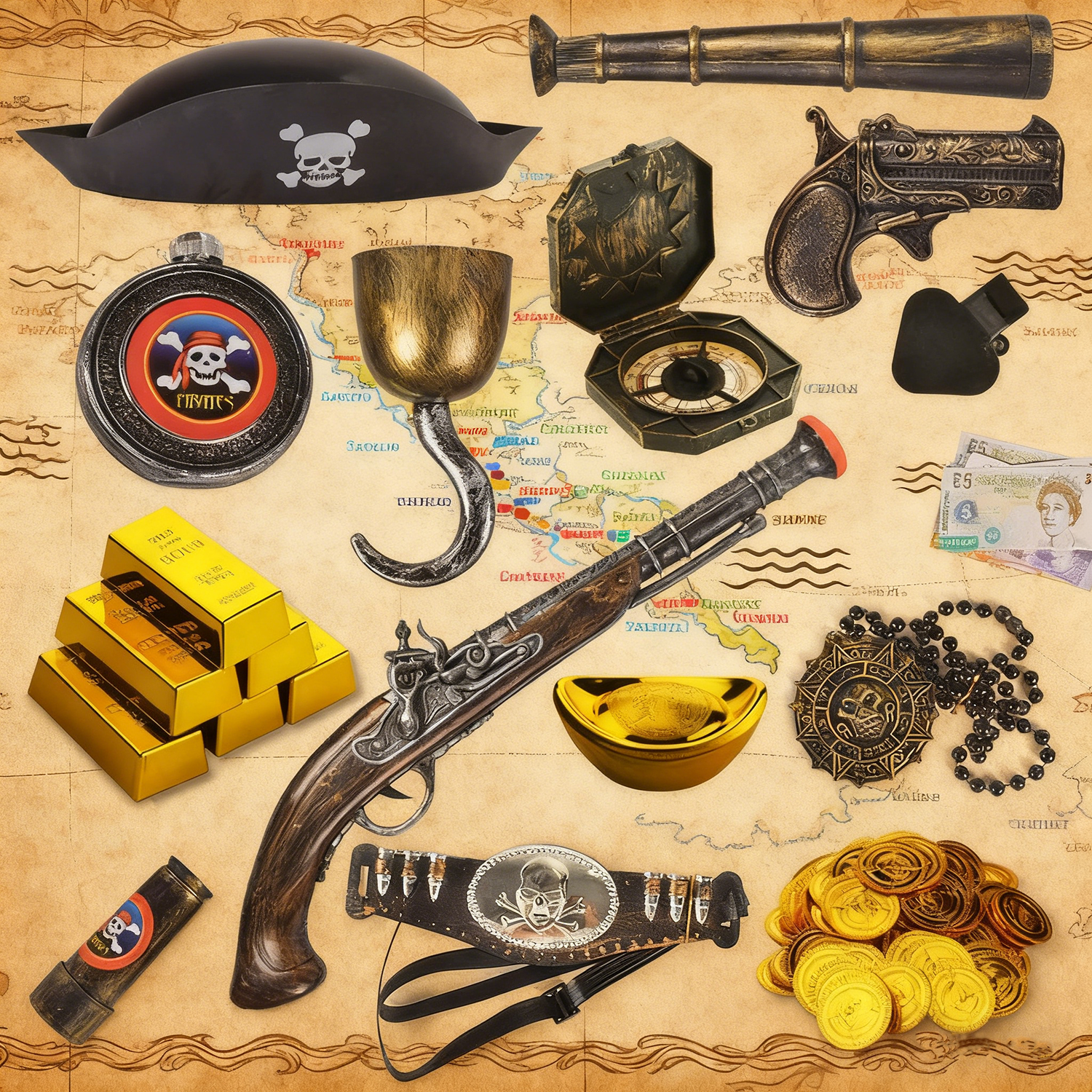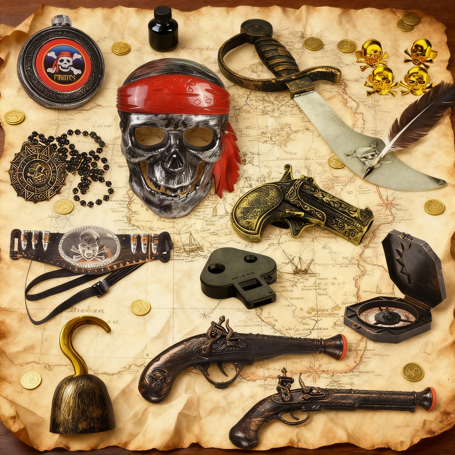 📚 儿童男孩玩具万圣节舞台表演cos海盗帽钩子号角眼罩塑料刀枪装扮