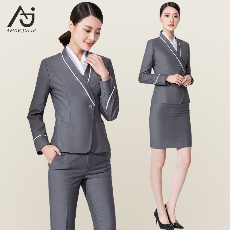 📚 南航空姐制服女灰色职业工装美容销售酒店售楼部高端工.作服套装