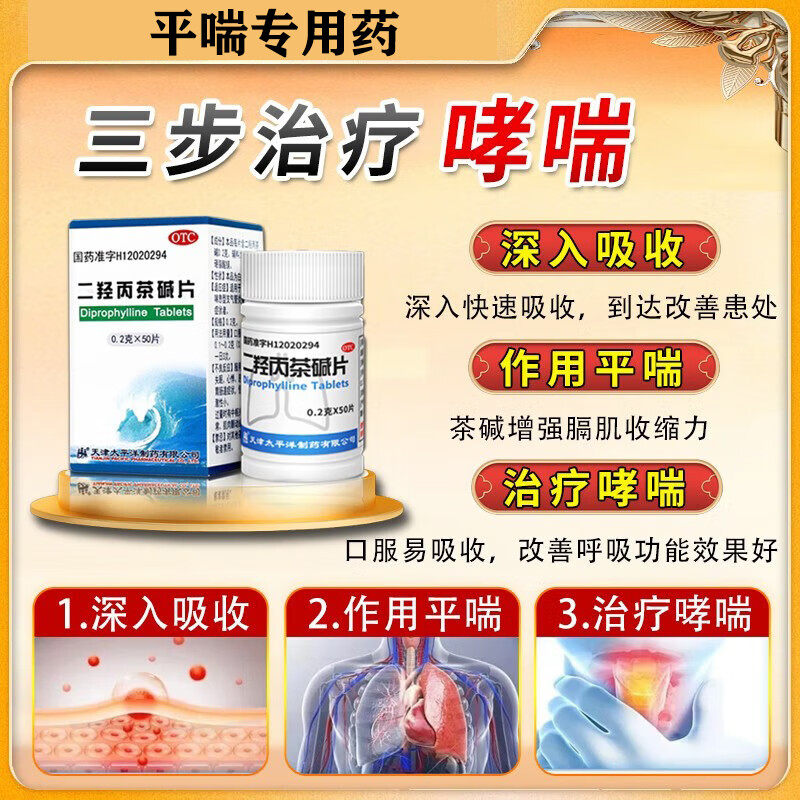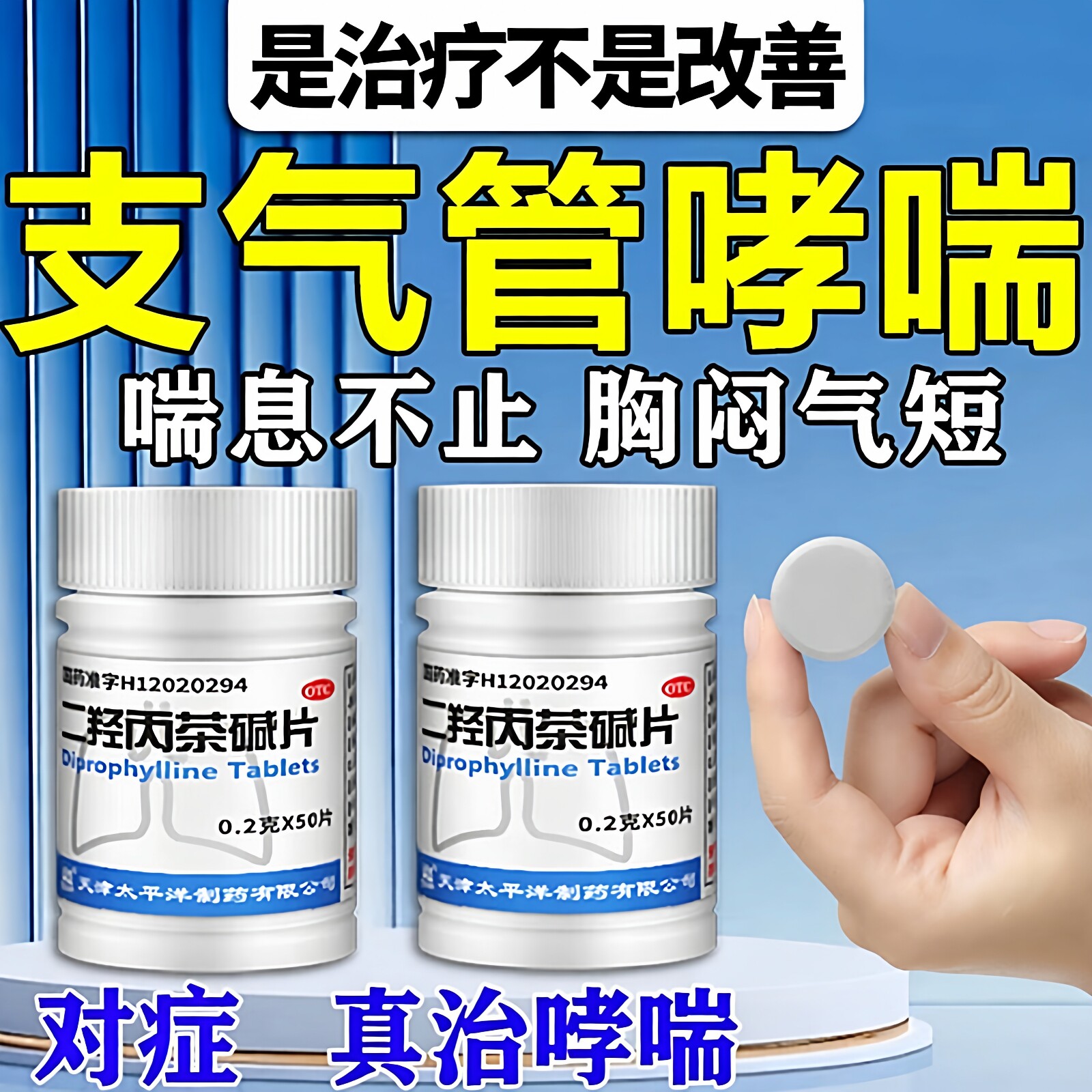 📚 二羟丙茶碱片支气管哮喘专用药呼吸困难上不来气咳嗽慢性支气管炎