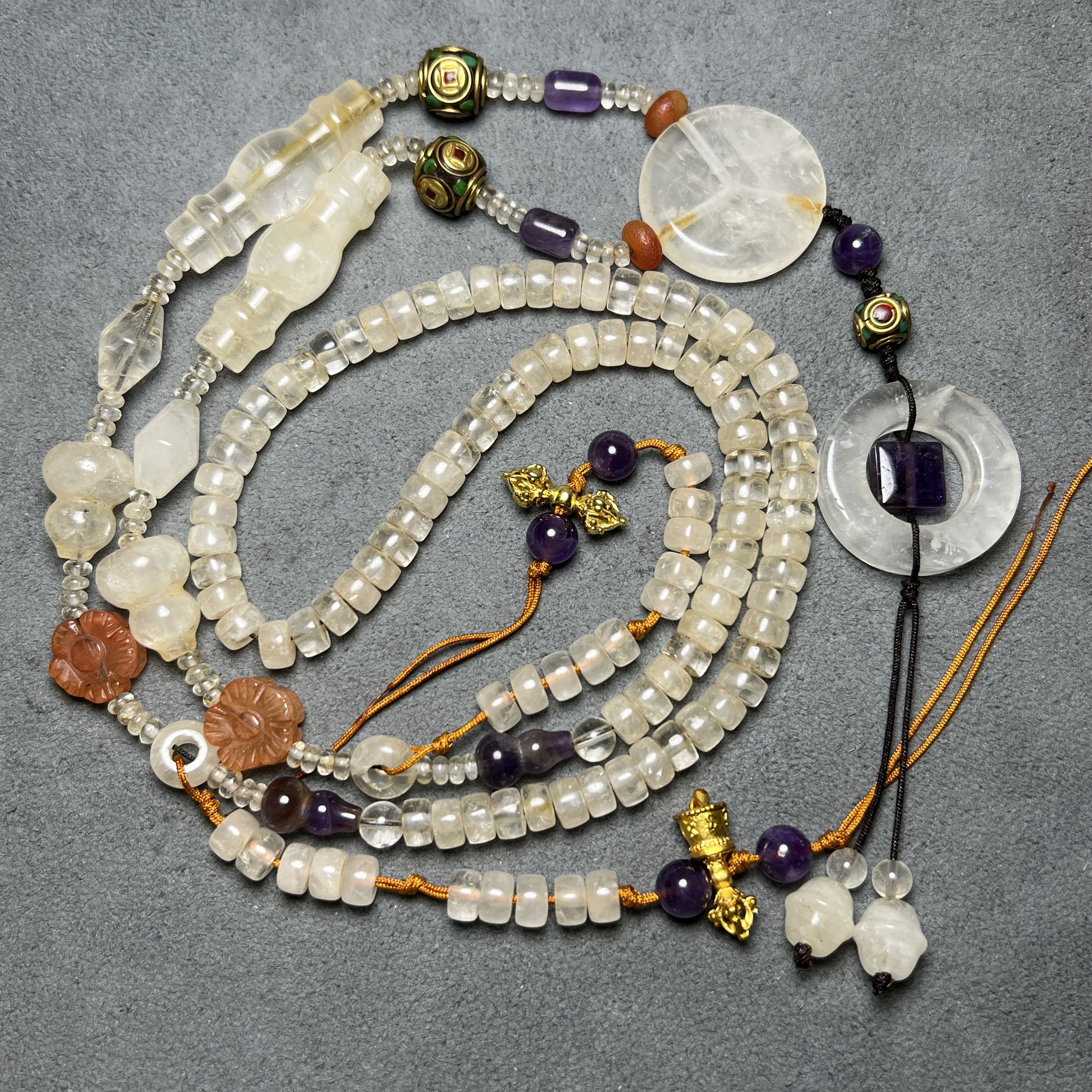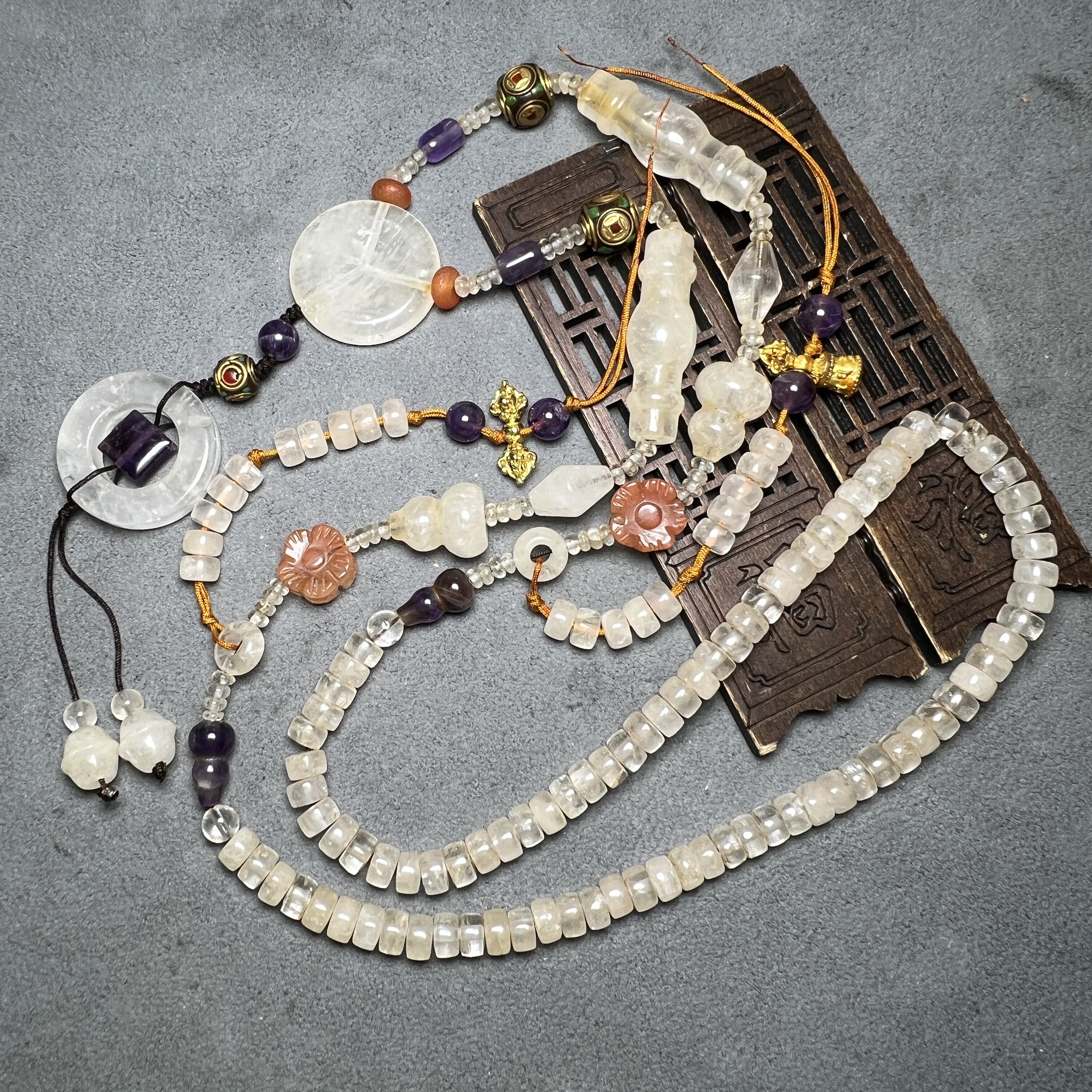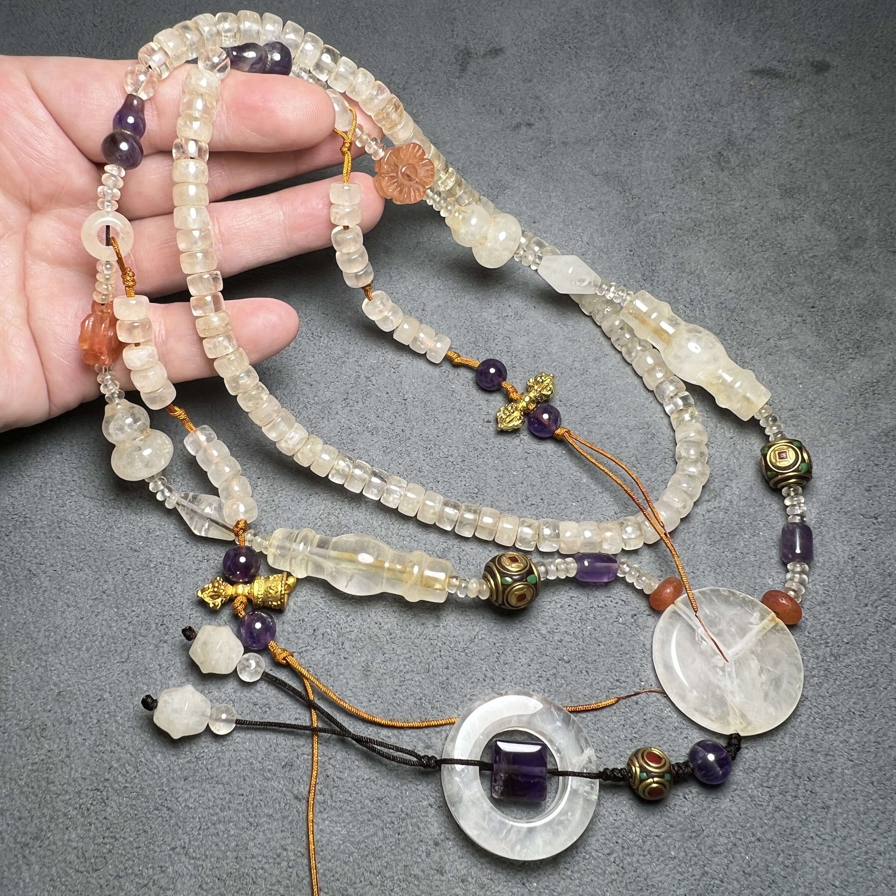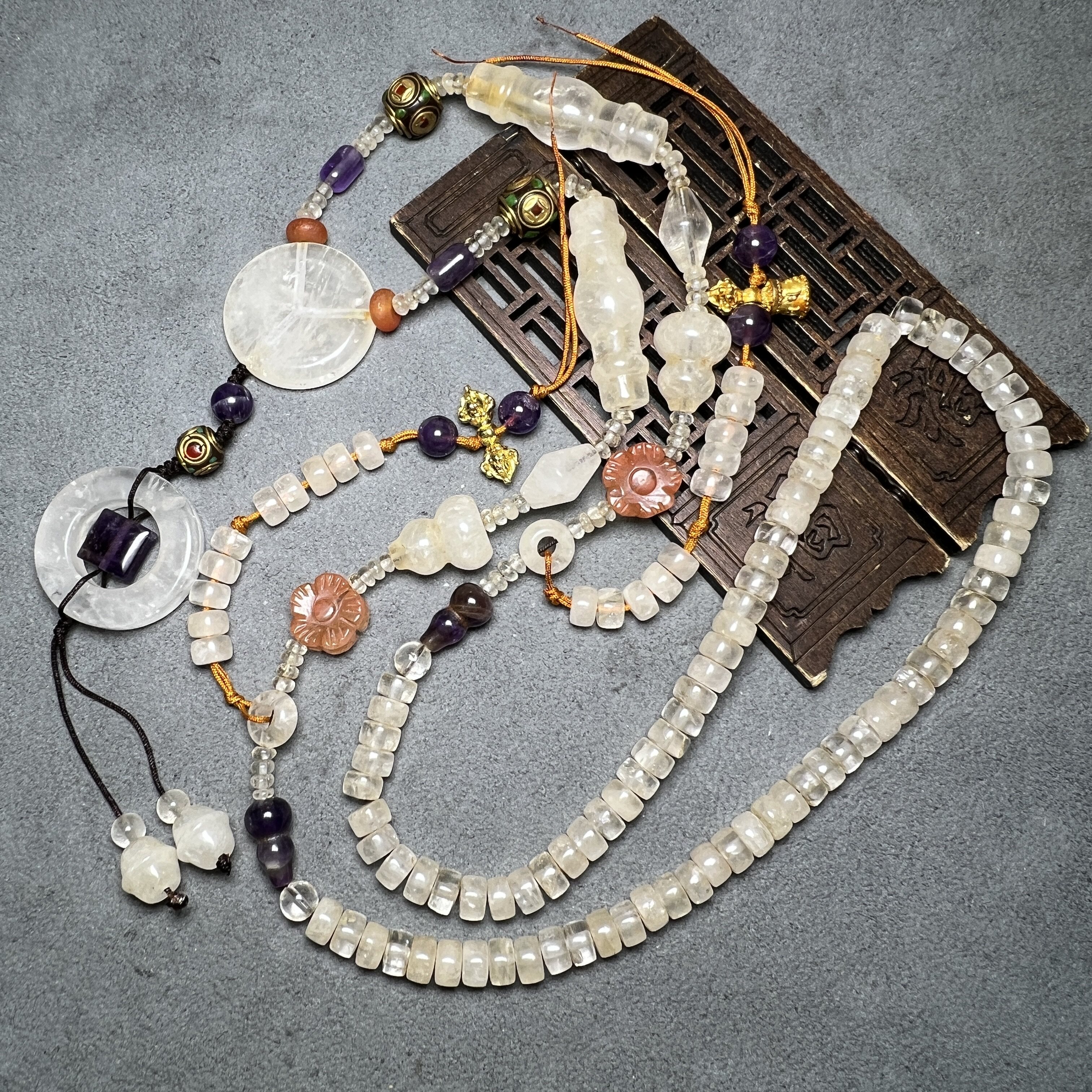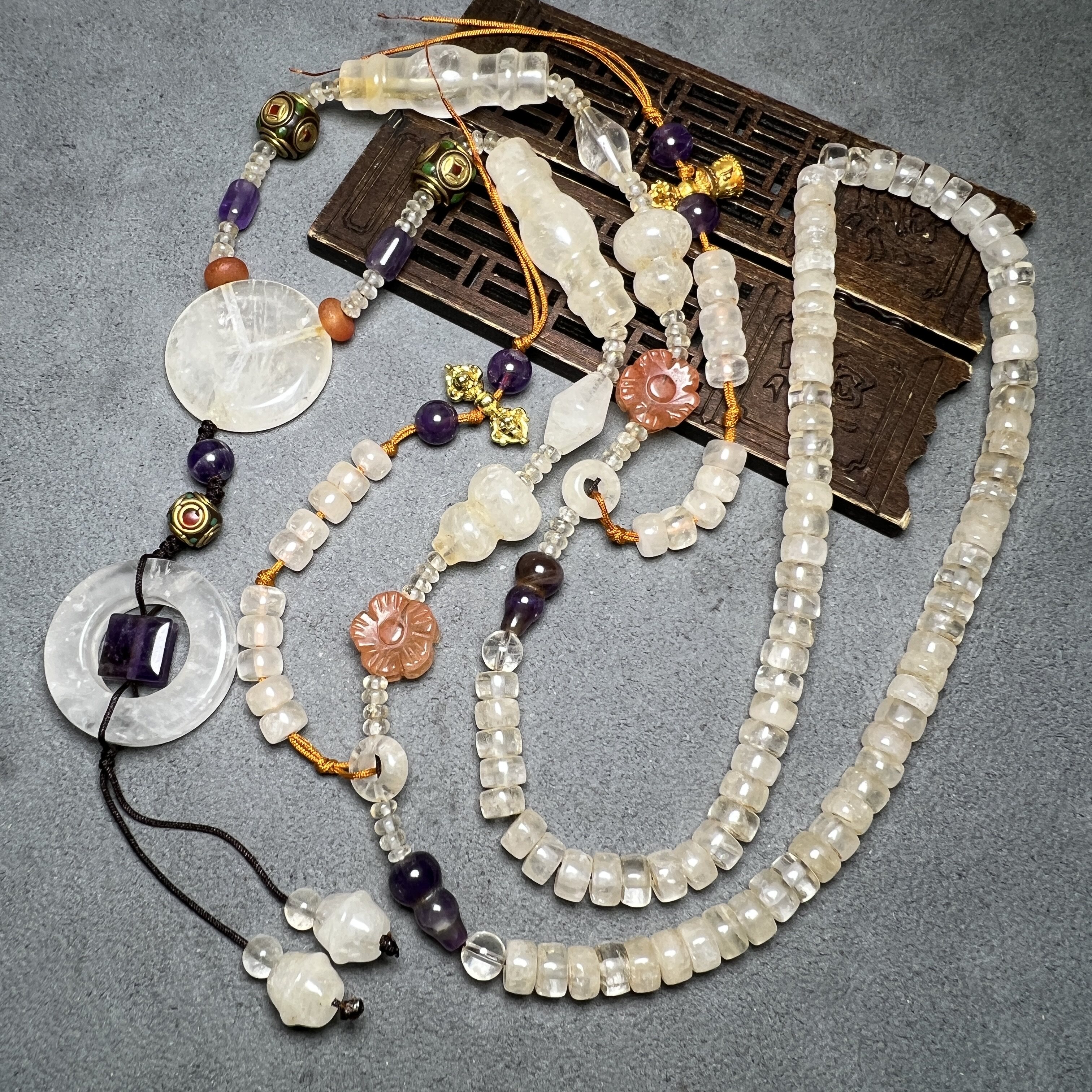 📚 古玩天然老白水晶项链多圈手链毛衣链高古水晶项链 天然多宝水晶