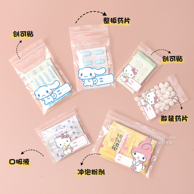 📚 三丽鸥HelloKitty药品分装袋便携随身西药密封袋药片丸自封袋药盒