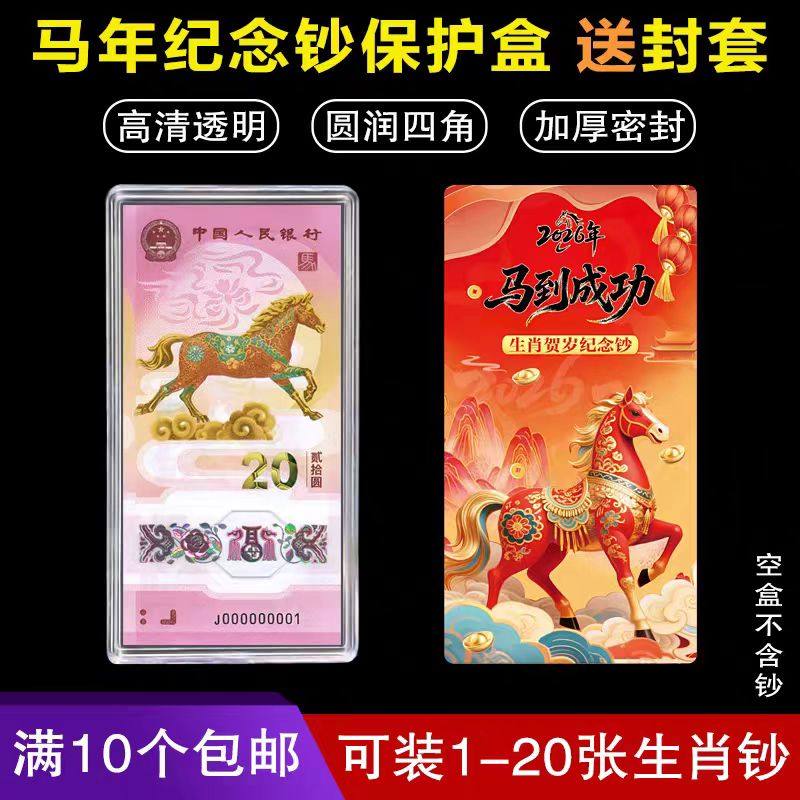 📚 2026马年纪念钞1-20张20元马钞保护盒单张收藏盒钱币收纳盒收藏盒