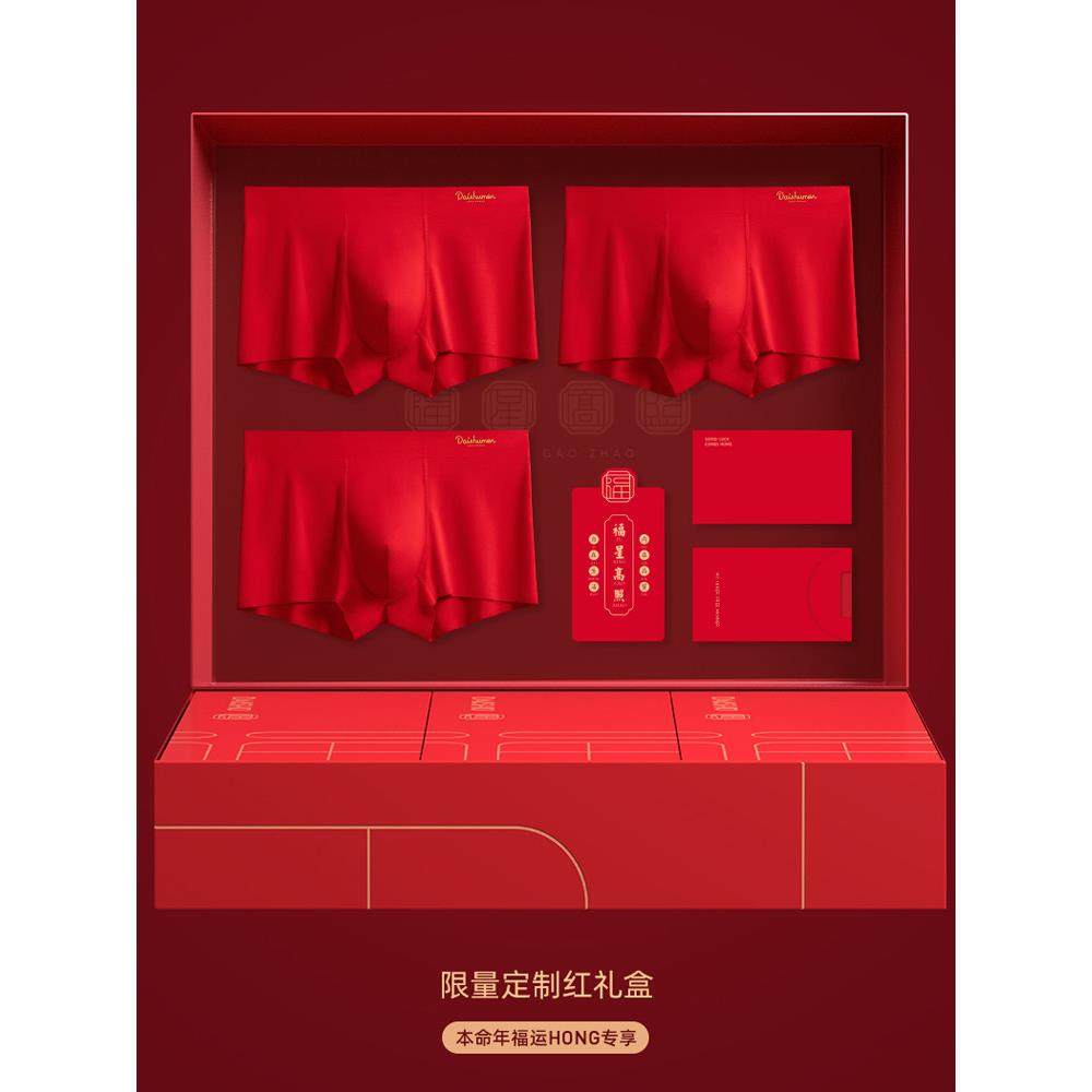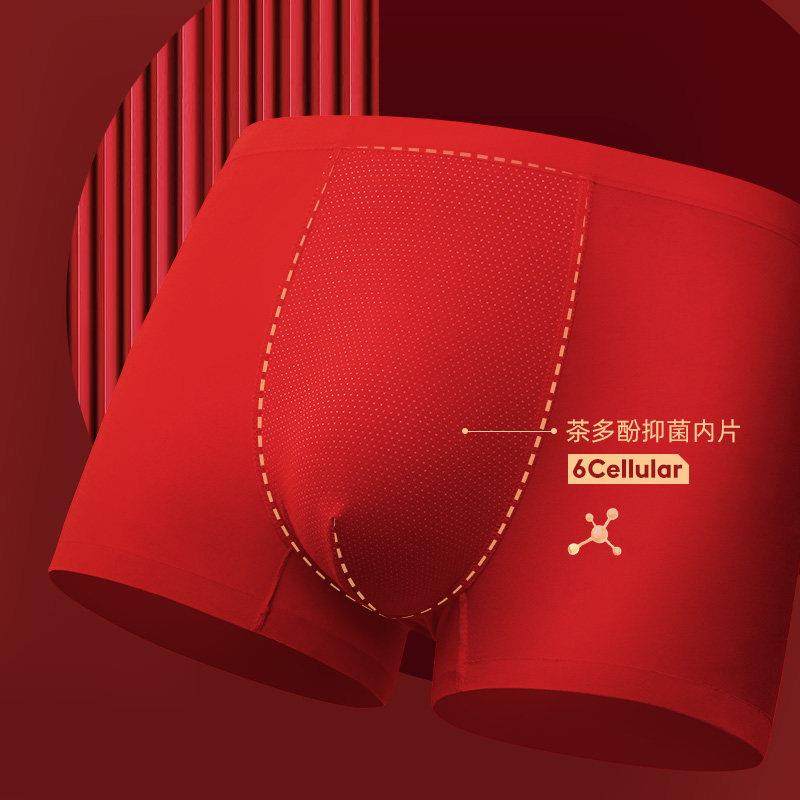 📚 Mostarsea~本命年一顺到底!大红色莫代尔内裤男无痕一片式四角裤
