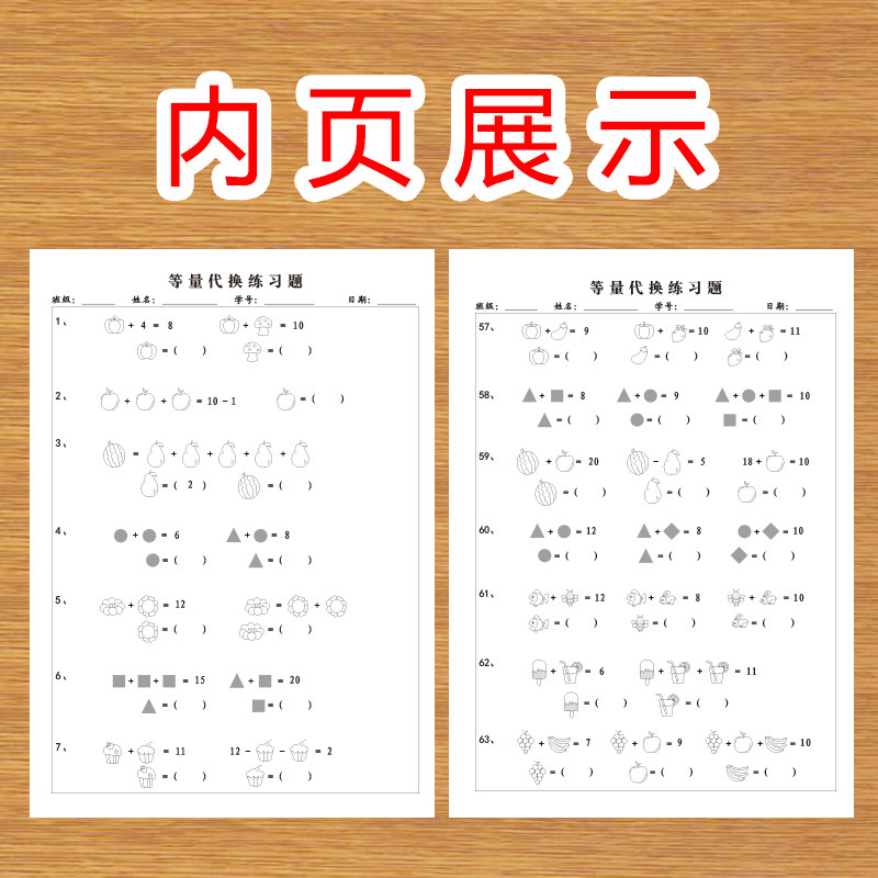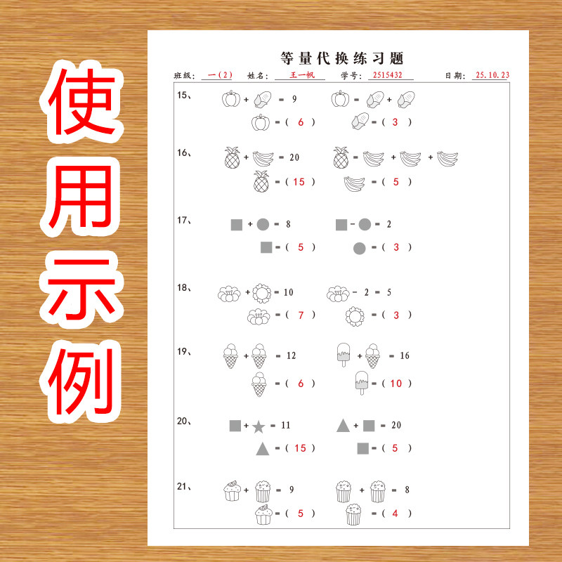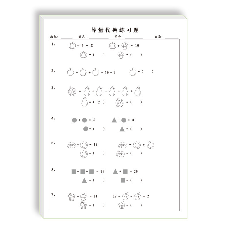 📚 20以内数学简单推理图形等量代换思维训练计算练习纸