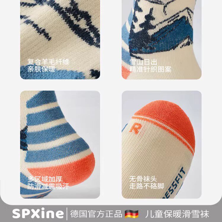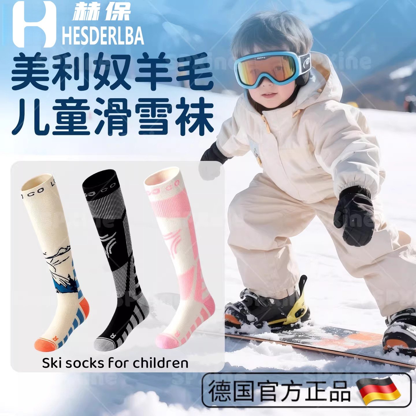 📚 儿童滑雪袜男女加厚保暖专业美利奴羊毛长筒户外防寒登山冬毛袜子