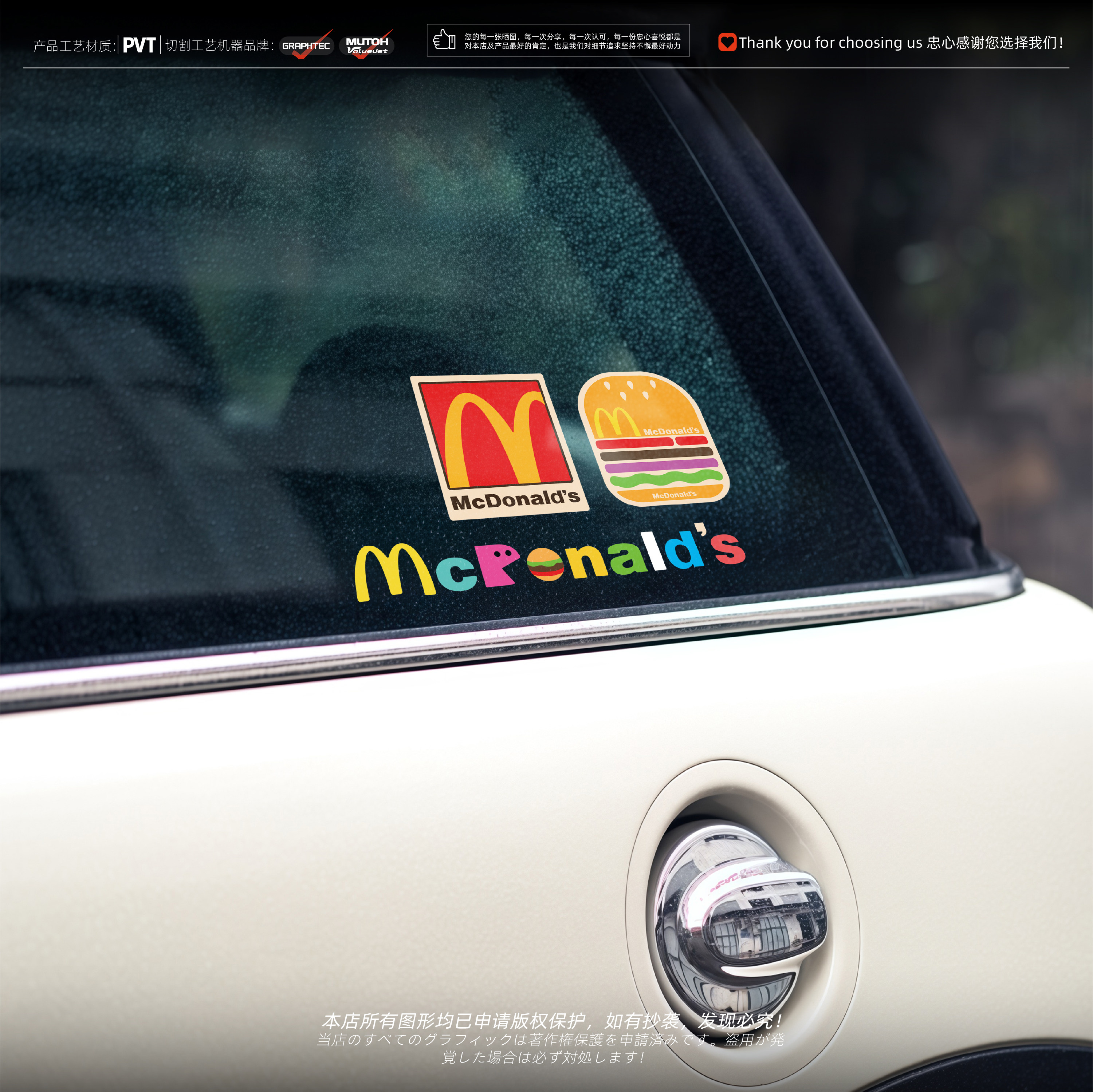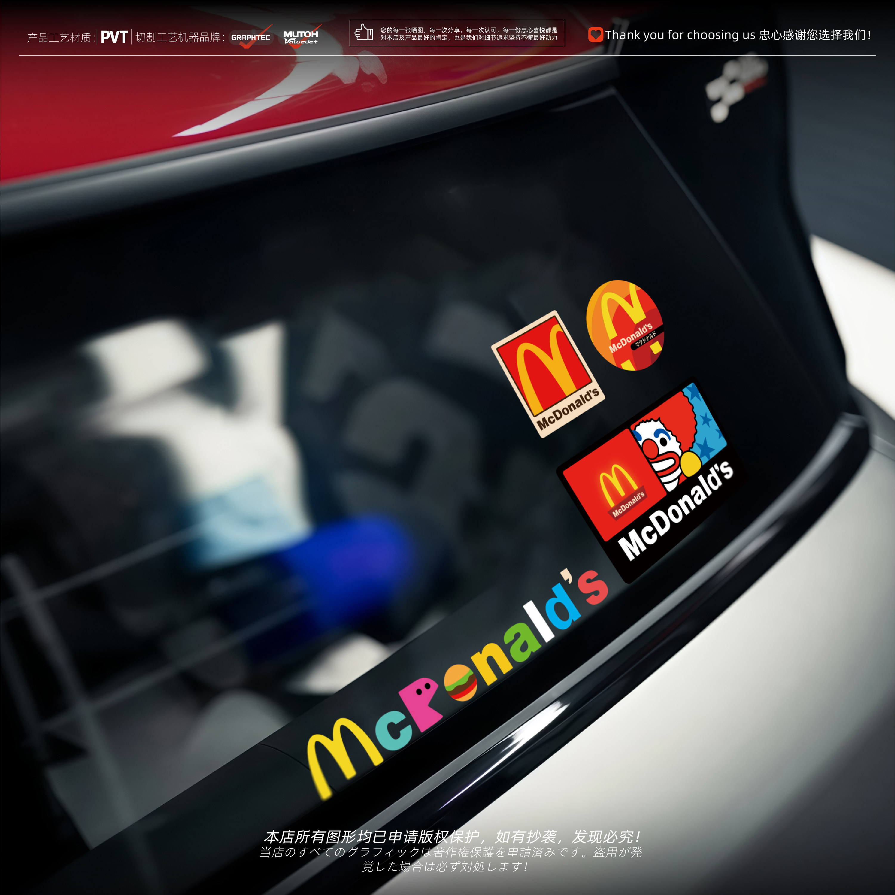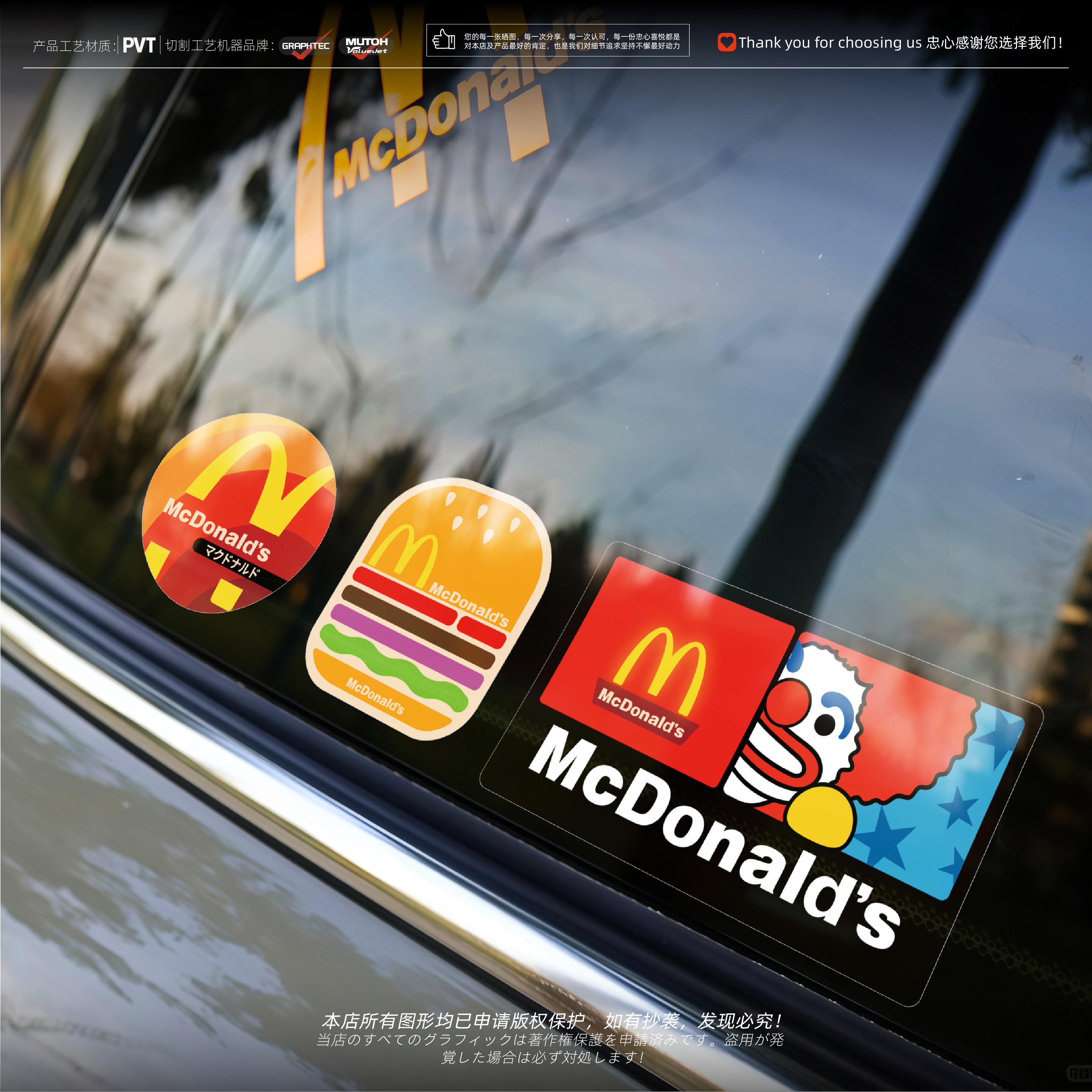 📚 麦当劳卡通创意贴纸汽车侧窗车身玻璃划痕遮挡电动摩托防水装饰贴
