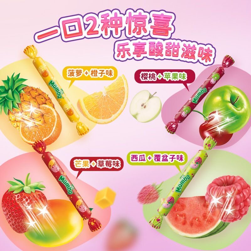 📚 德国进口Mamba魔法棒形水果软糖多口味儿童耐嚼糖果条装喜糖140g