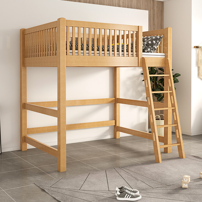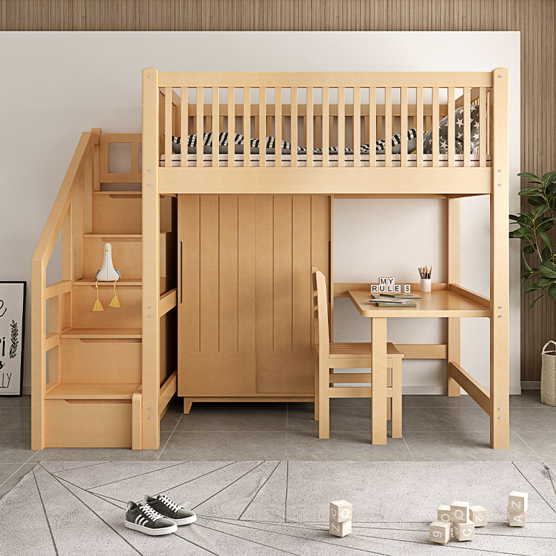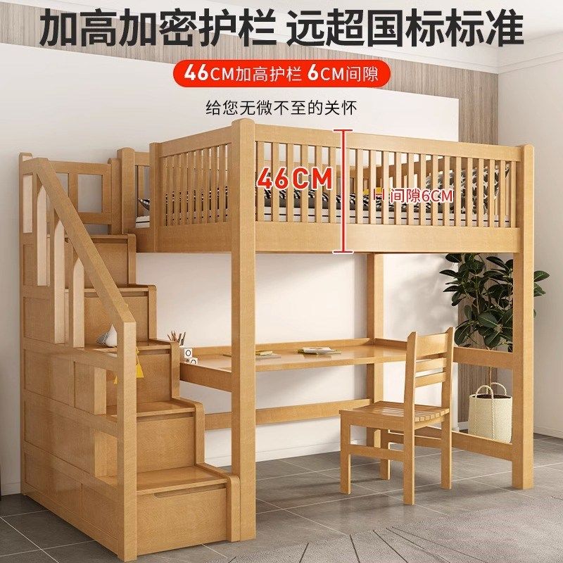 📚 全实木爬梯高架床小户型上床下书桌组合儿童床衣柜一体单独上层床