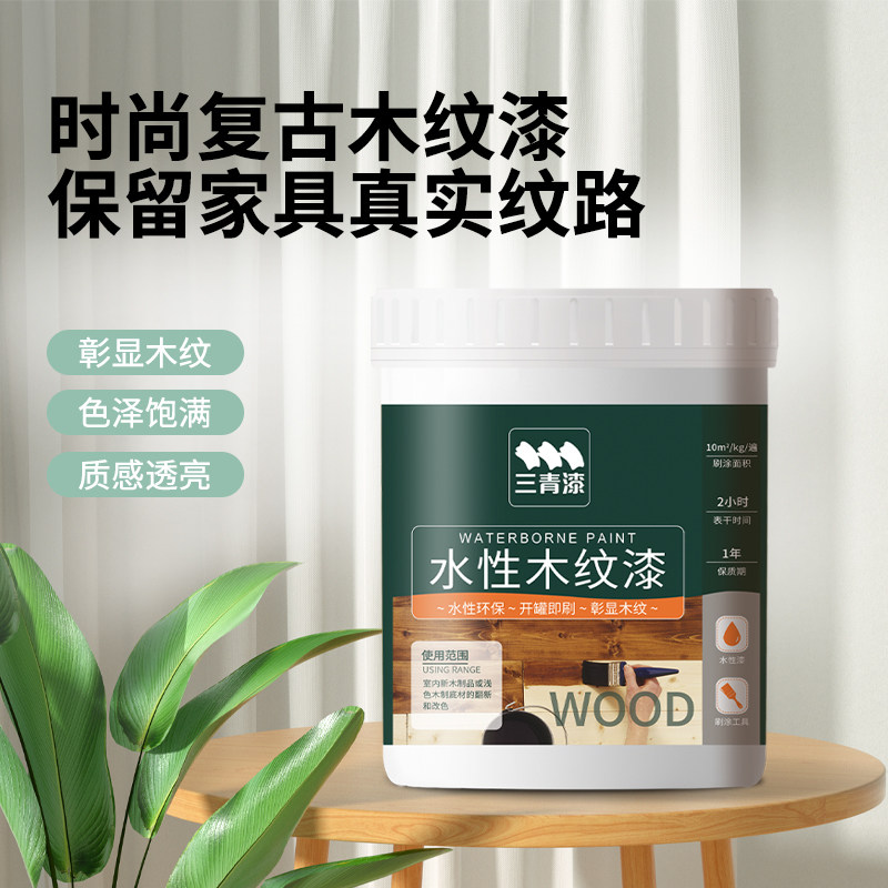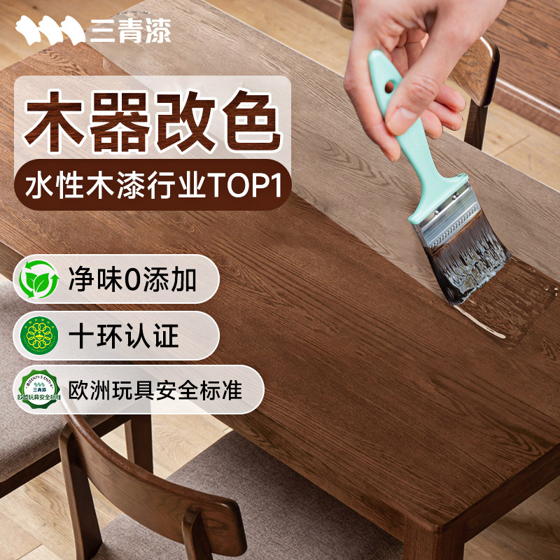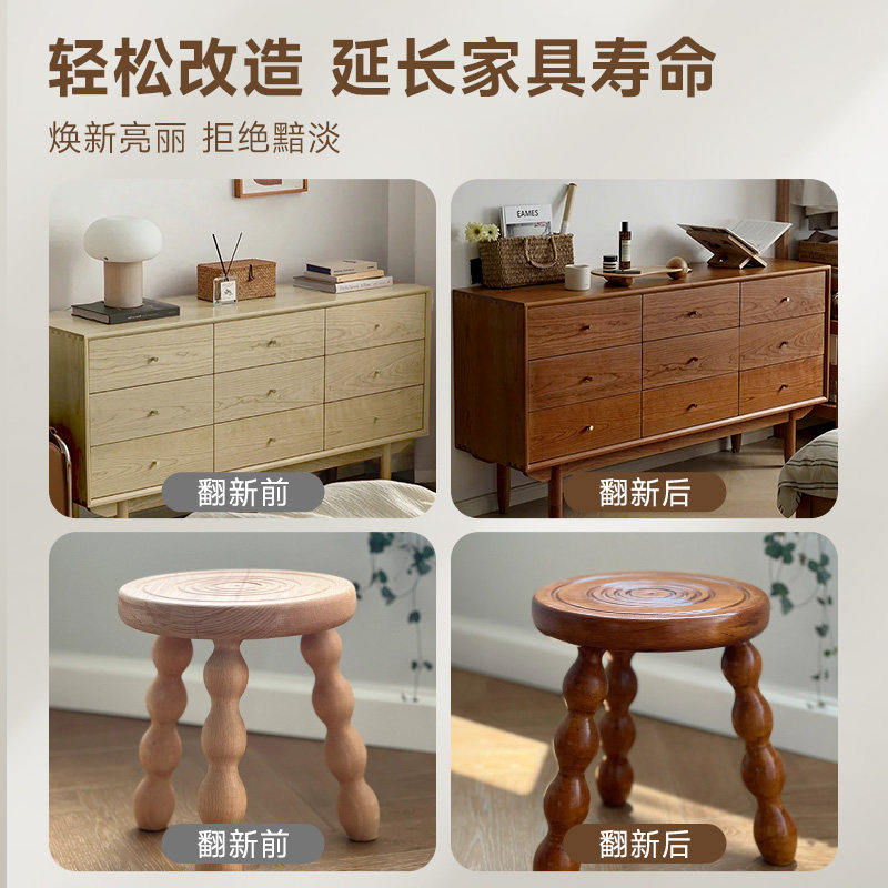 📚 三青水性木纹漆胡桃木色油漆旧木质家具翻新实木柜子改色专用木漆