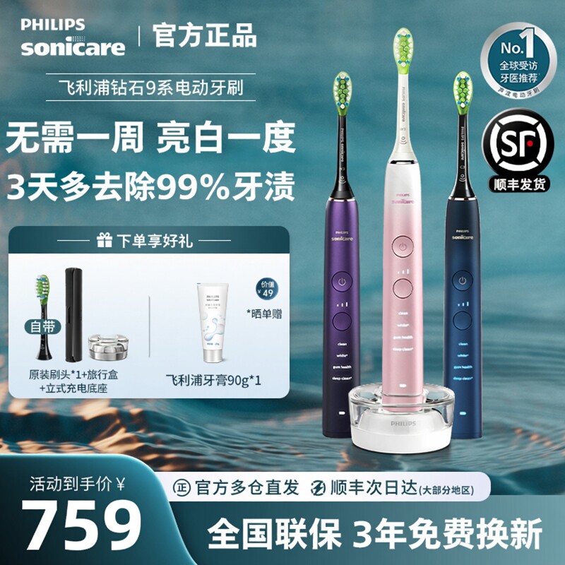 📚 飞利浦电动牙刷9系智能成人声波震动全新原装官方正品HX9911