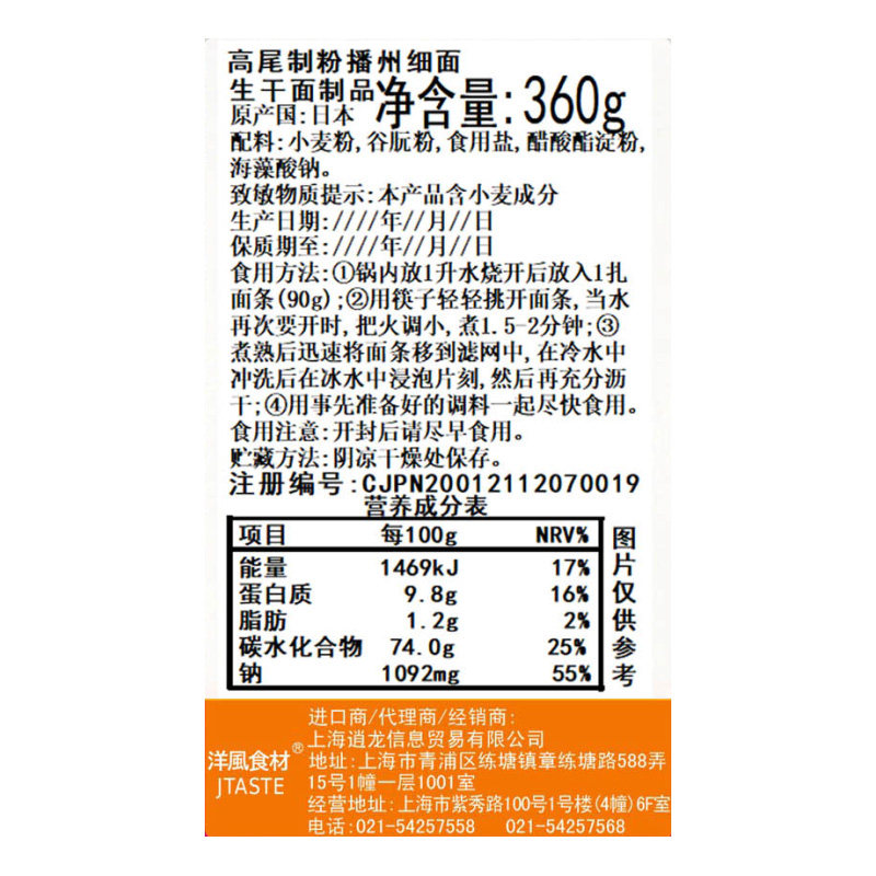 📚 日本进口食品 高尾制粉 播州细面 360g 冷面素面2-3人份全家份