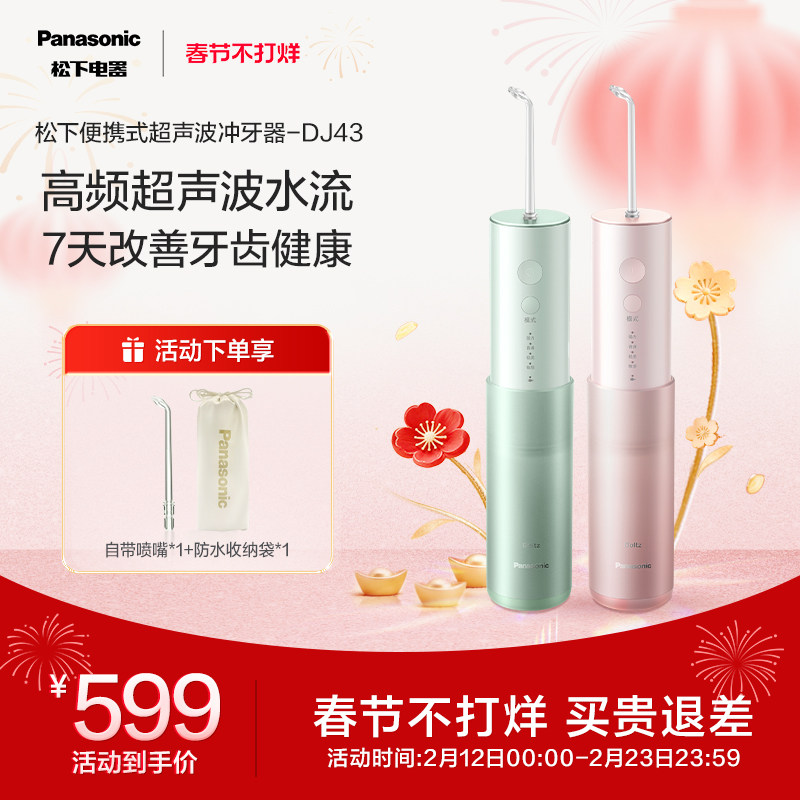 67¥ MF287 9TagUoqXITK¥ https://m.tb.cn/h.7y10mBC 松下便携式冲牙器洗牙器口腔专用电动超声波水牙线小圆管DJ43 --------------------- 【原售价】999元 【优惠券】280元 【券后价】719元。