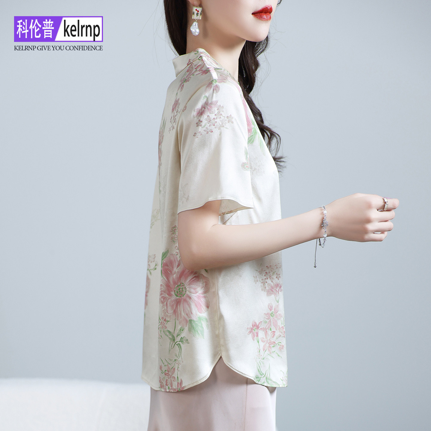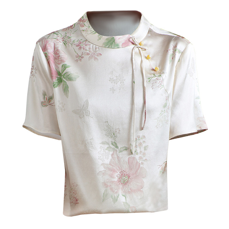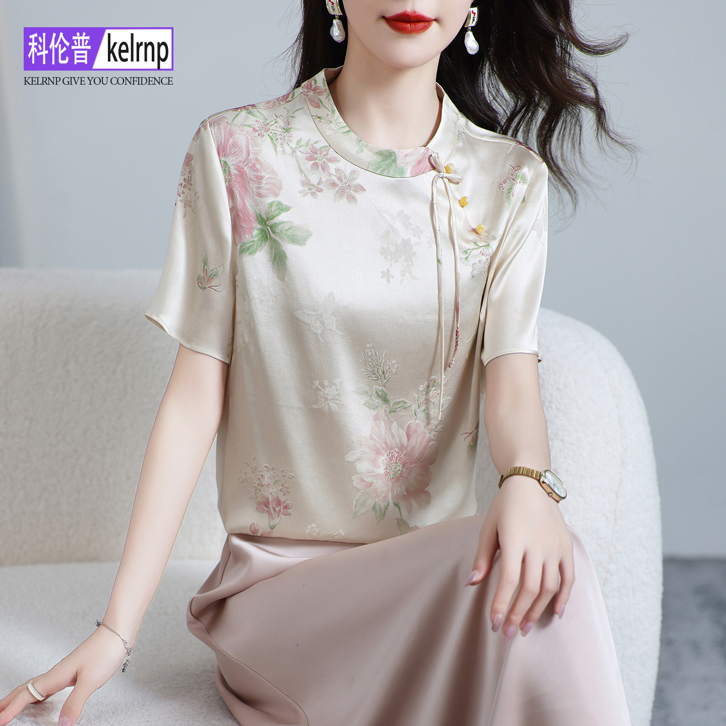📚 重磅真丝绸缎面t恤女2025夏新款短袖聚会郊游印花提花桑蚕丝上衣