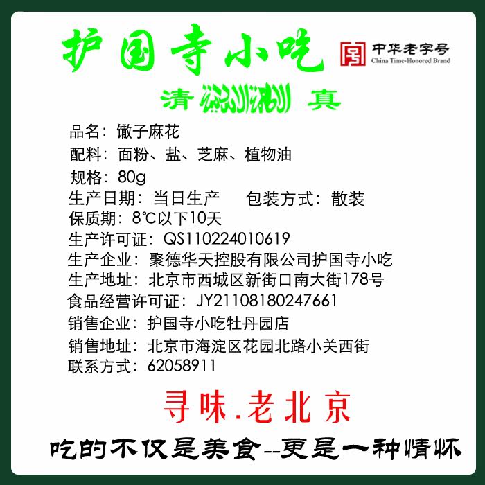 77¥ CZ007 8ivjUSWFWaO¥ https://m.tb.cn/h.7Jj7Gyf 正宗老北京特产护国寺小吃店馓子麻花3个清真(易碎) --------------------- 【原售价】19.9元 【现售价】19.9元。