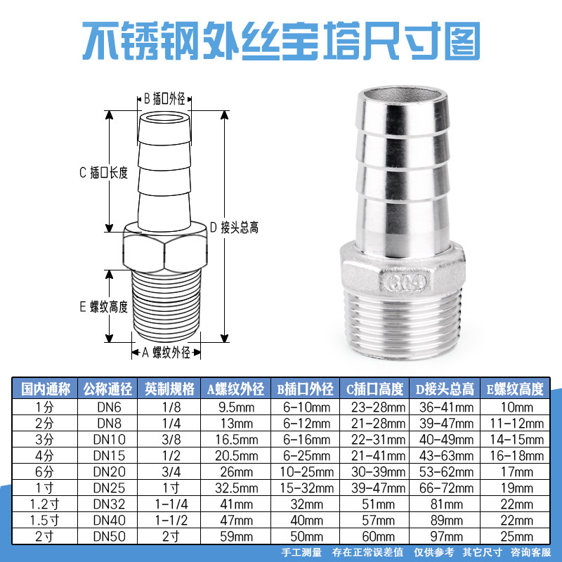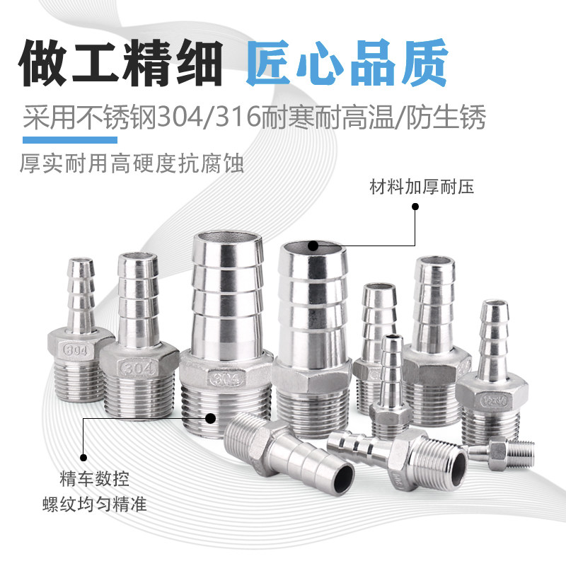 📚 304不锈钢宝塔接头外丝变径皮管接头软/PU管异径管接头4分6分1寸